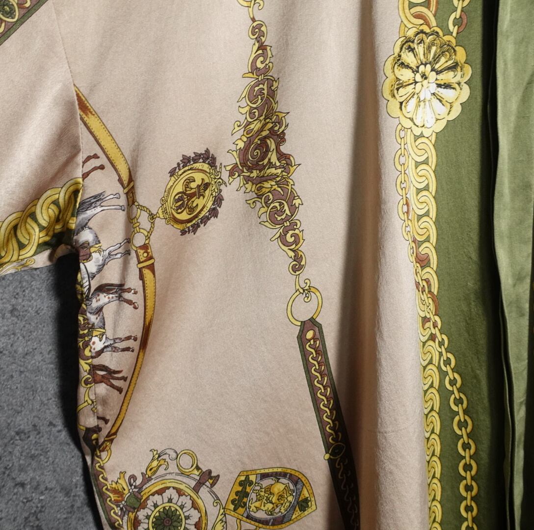 レトロな雰囲気が漂うスカーフ柄を全面にあしらったラグジュアリーなデザイン。