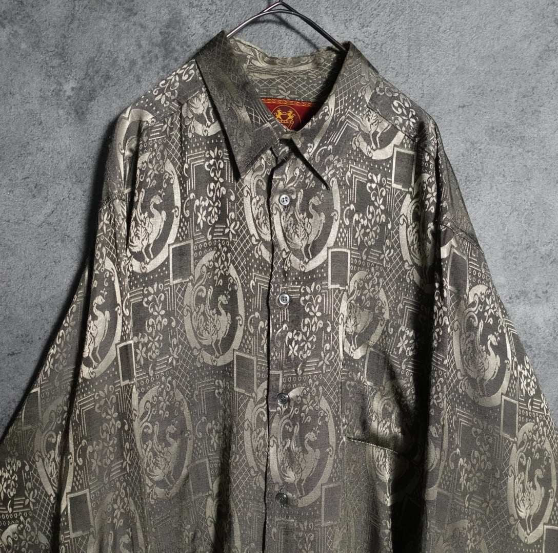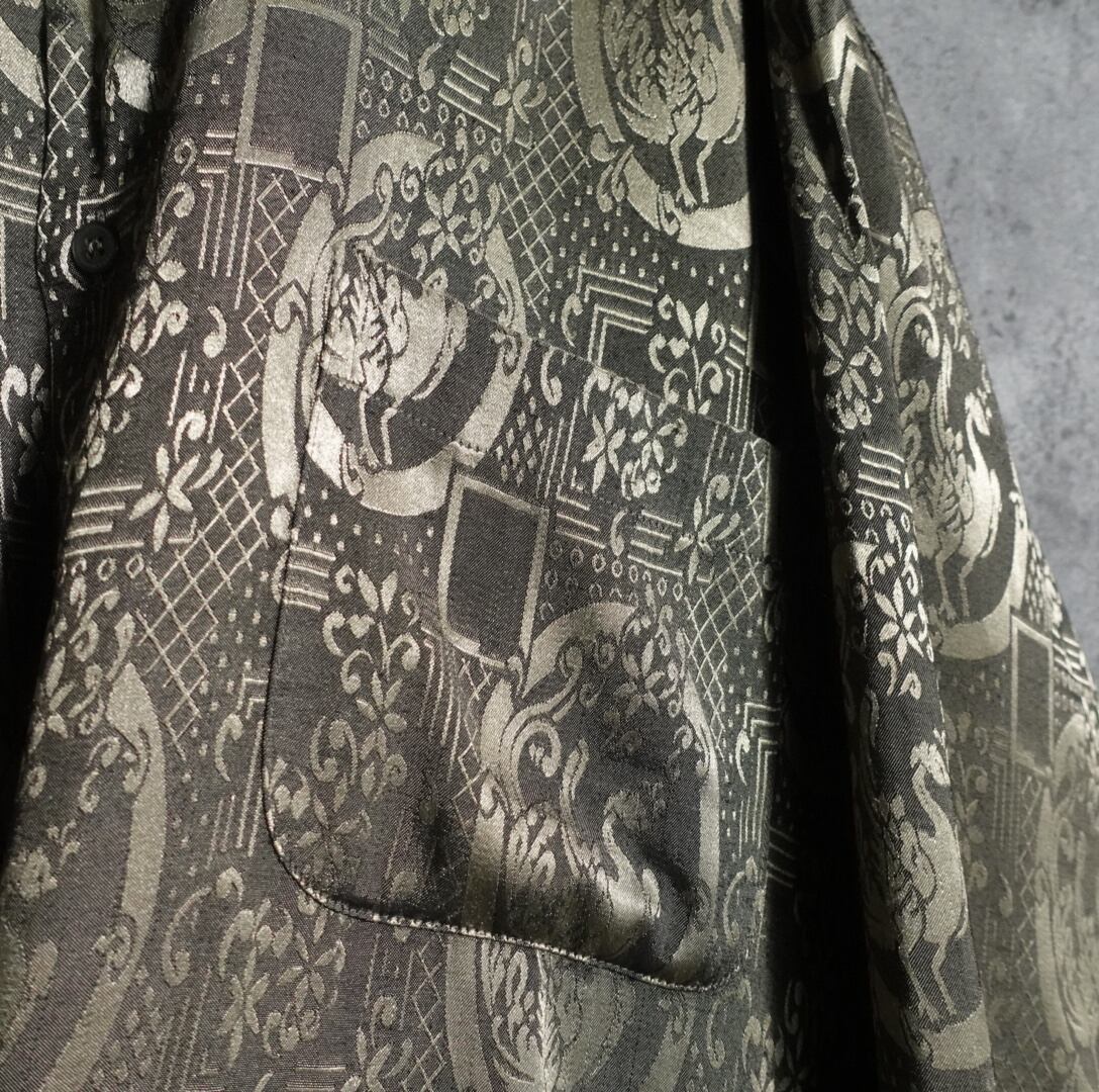 カーキをベースにゴールドの鳳凰と花のモチーフを全面にあしらったインパクトのあるデザイン。