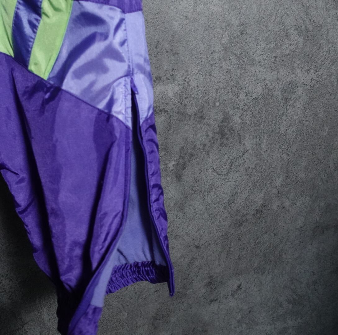 パープルをベースに脛部分に蛍光グリーンとブルーグレー切り替えをあしらい、サイドジップを搭載した珍しいデザイン。