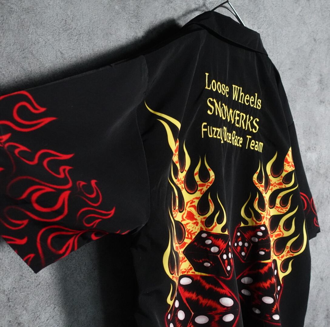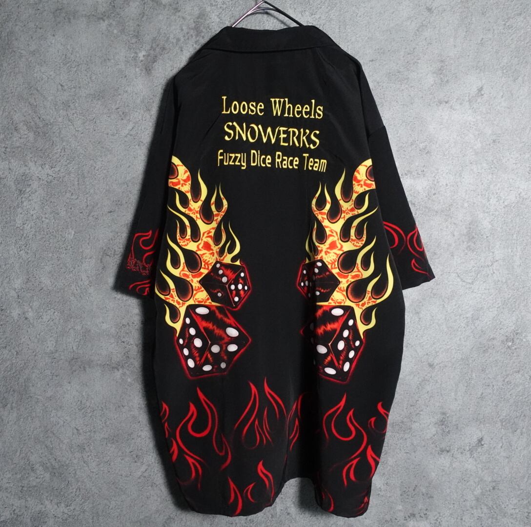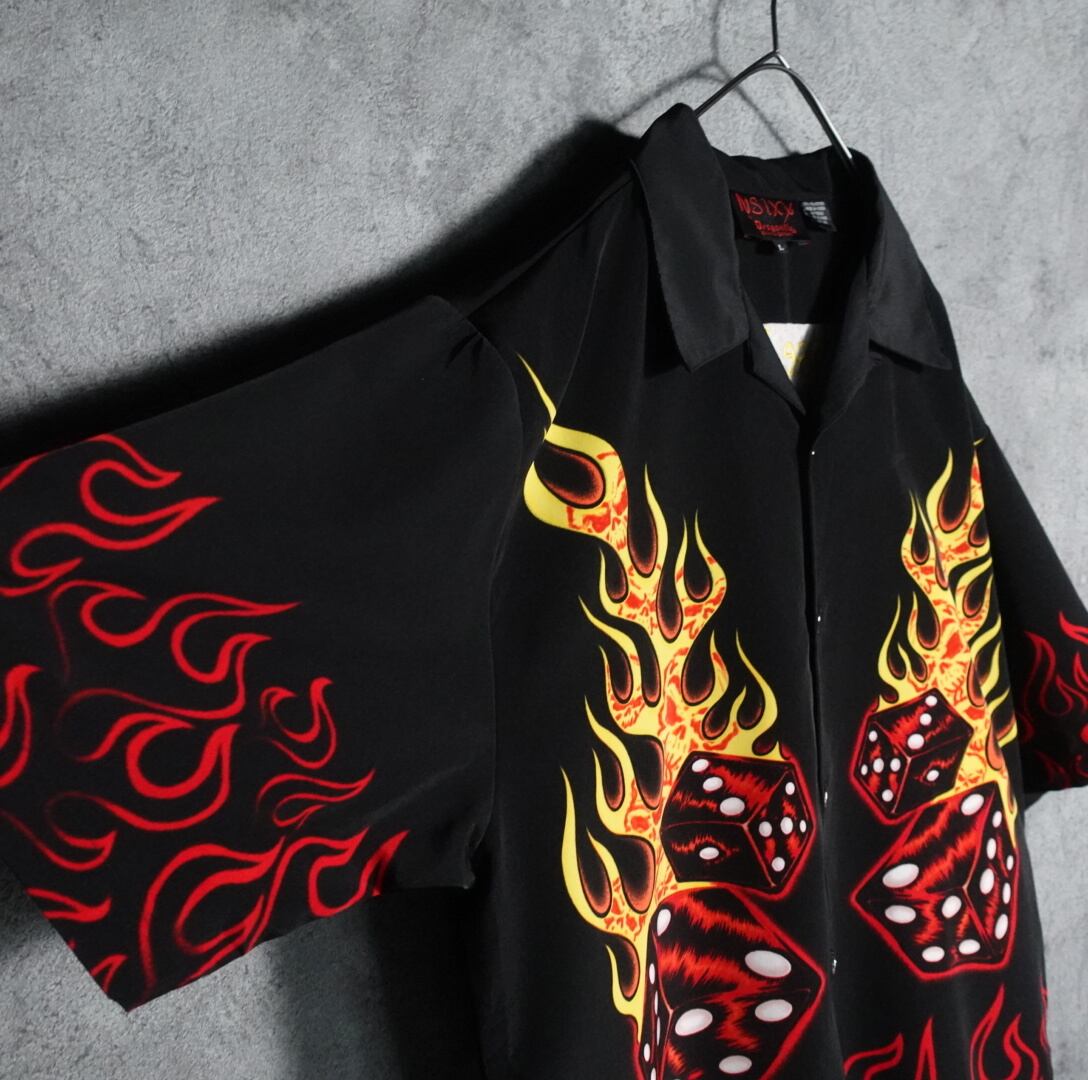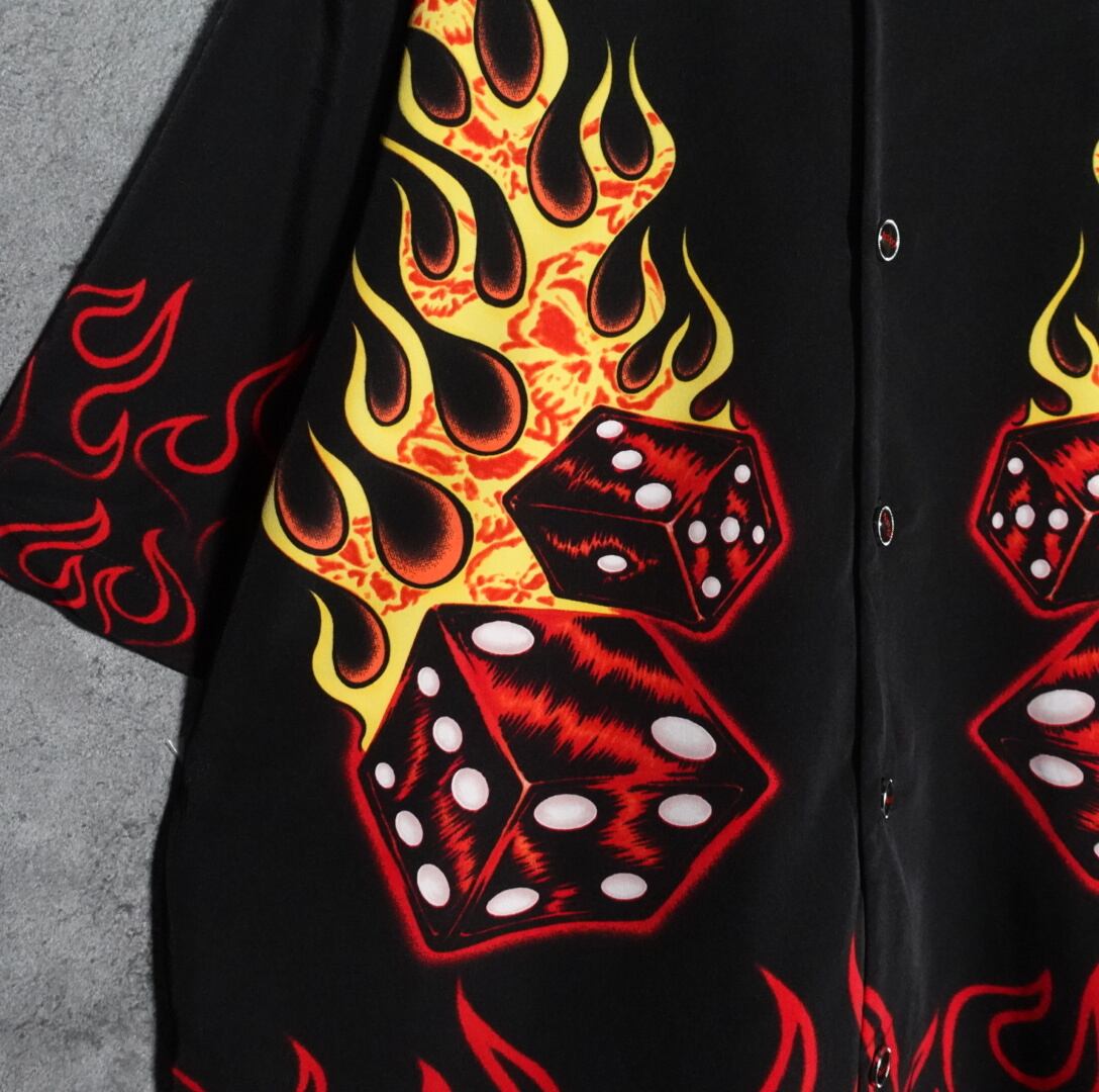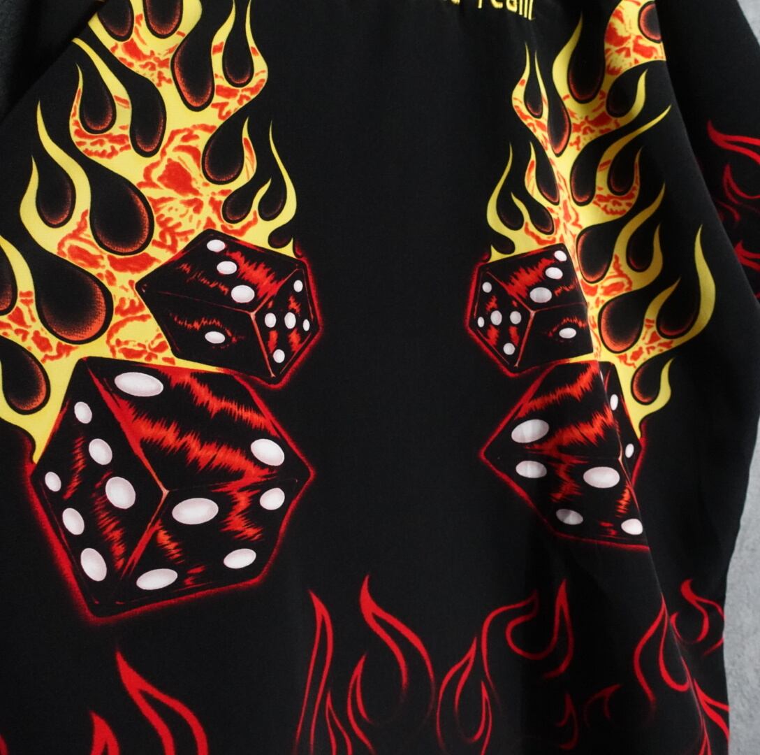 ブラックをベースにレッドのフレイム、ダイスを全面にあしらったインパクトのあるデザイン。