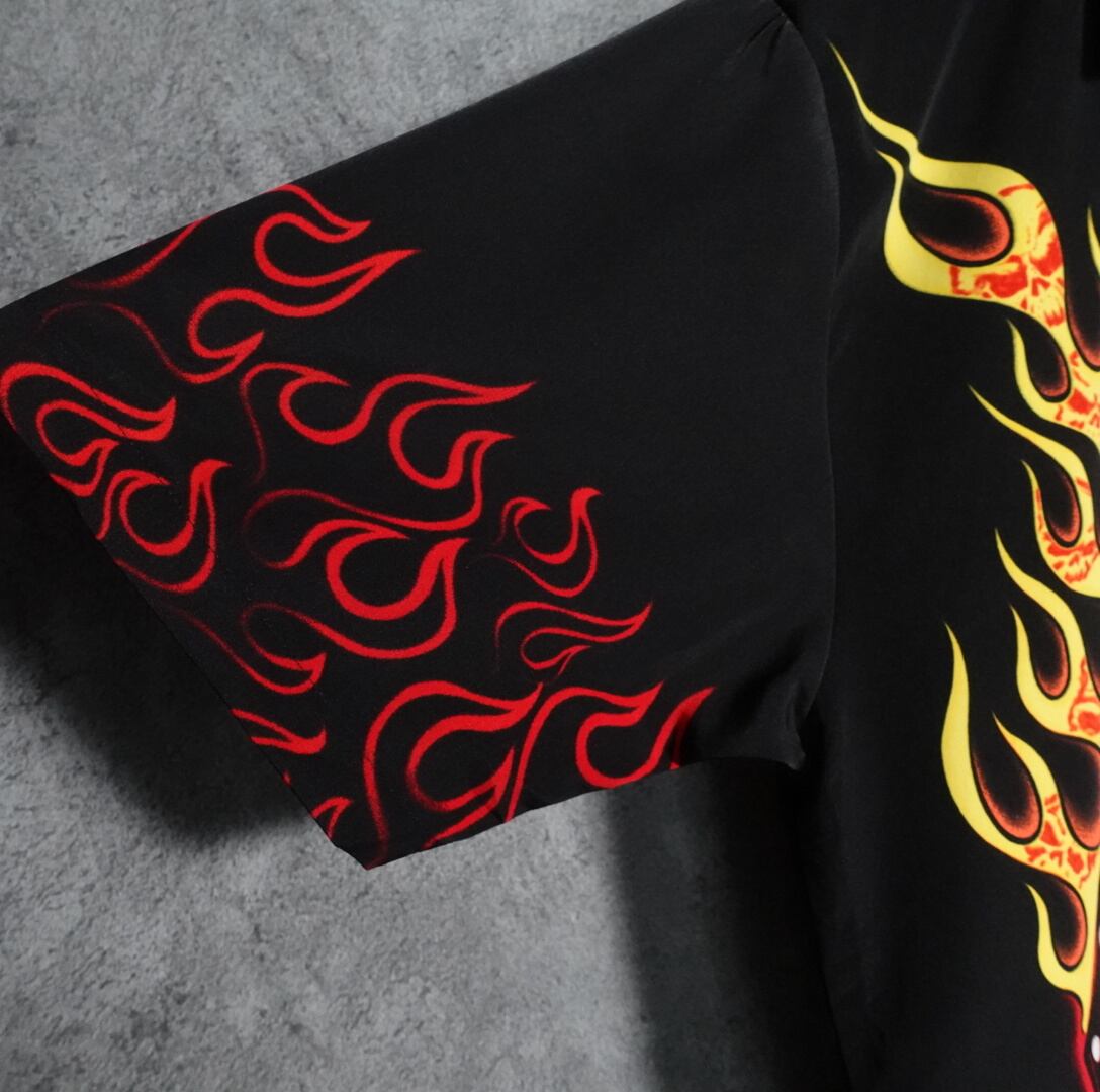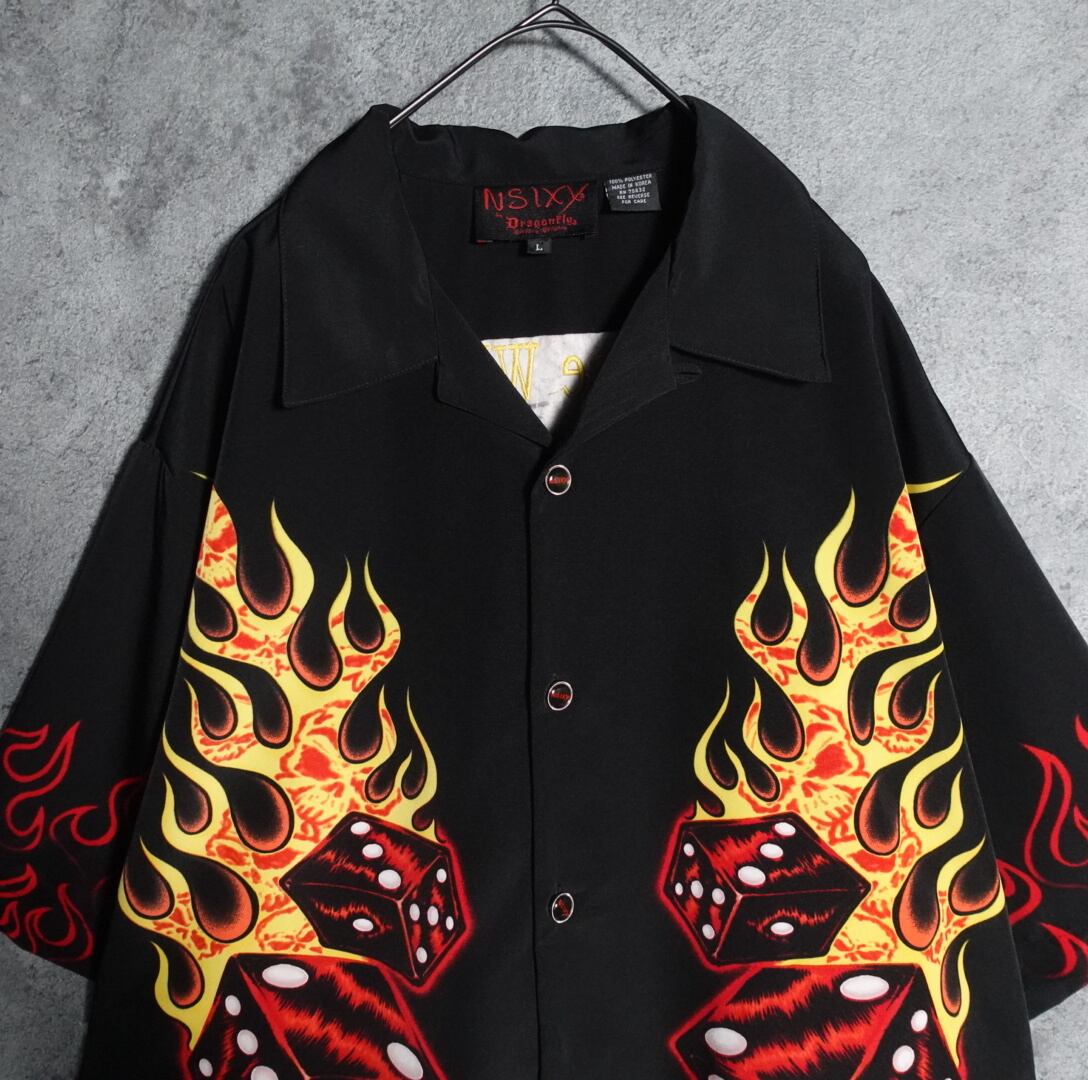 ブラックのフレイム柄オープンカラーシャツが入荷です。