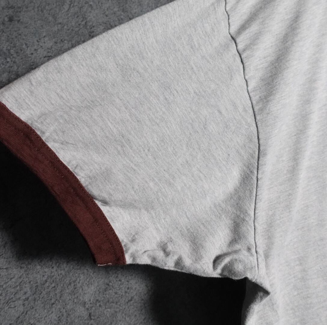 グレーをベースに襟、袖共にブラウンに切り替わった近年人気のリンガーTシャツ。