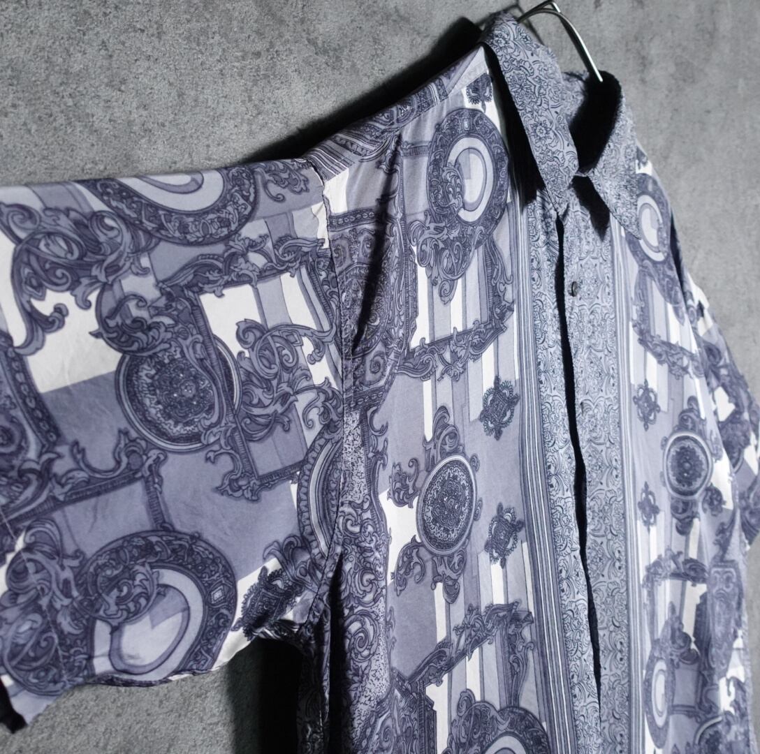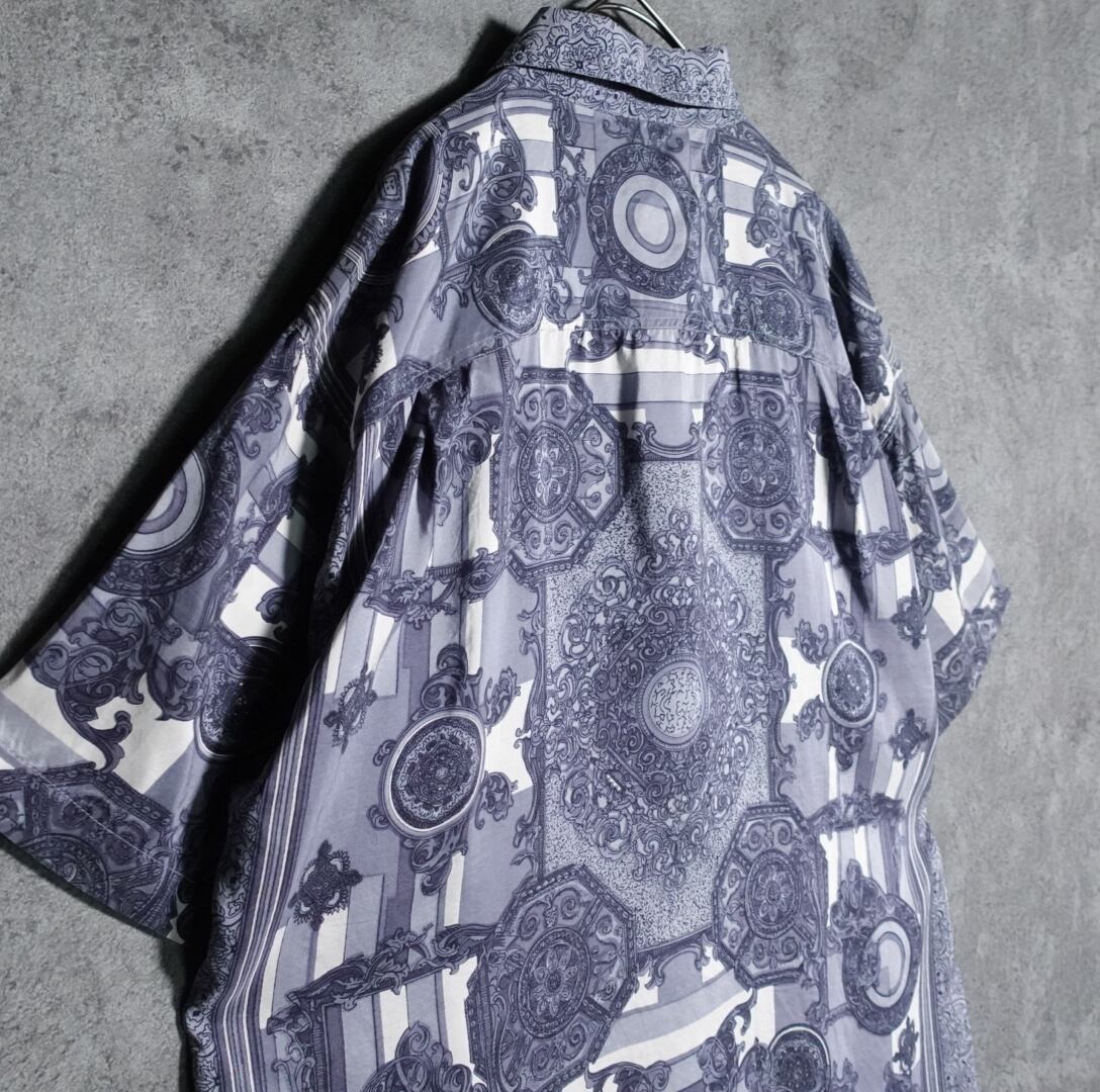 グレーのレトロな雰囲気が漂うスカーフ柄を全面にあしらったラグジュアリーなデザイン。