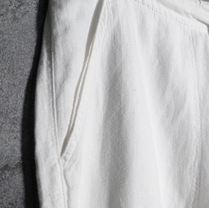 単色のホワイトなので、1着持っておくと様々なスタイリングにお使いいただけるこの夏着回し抜群の逸品です。