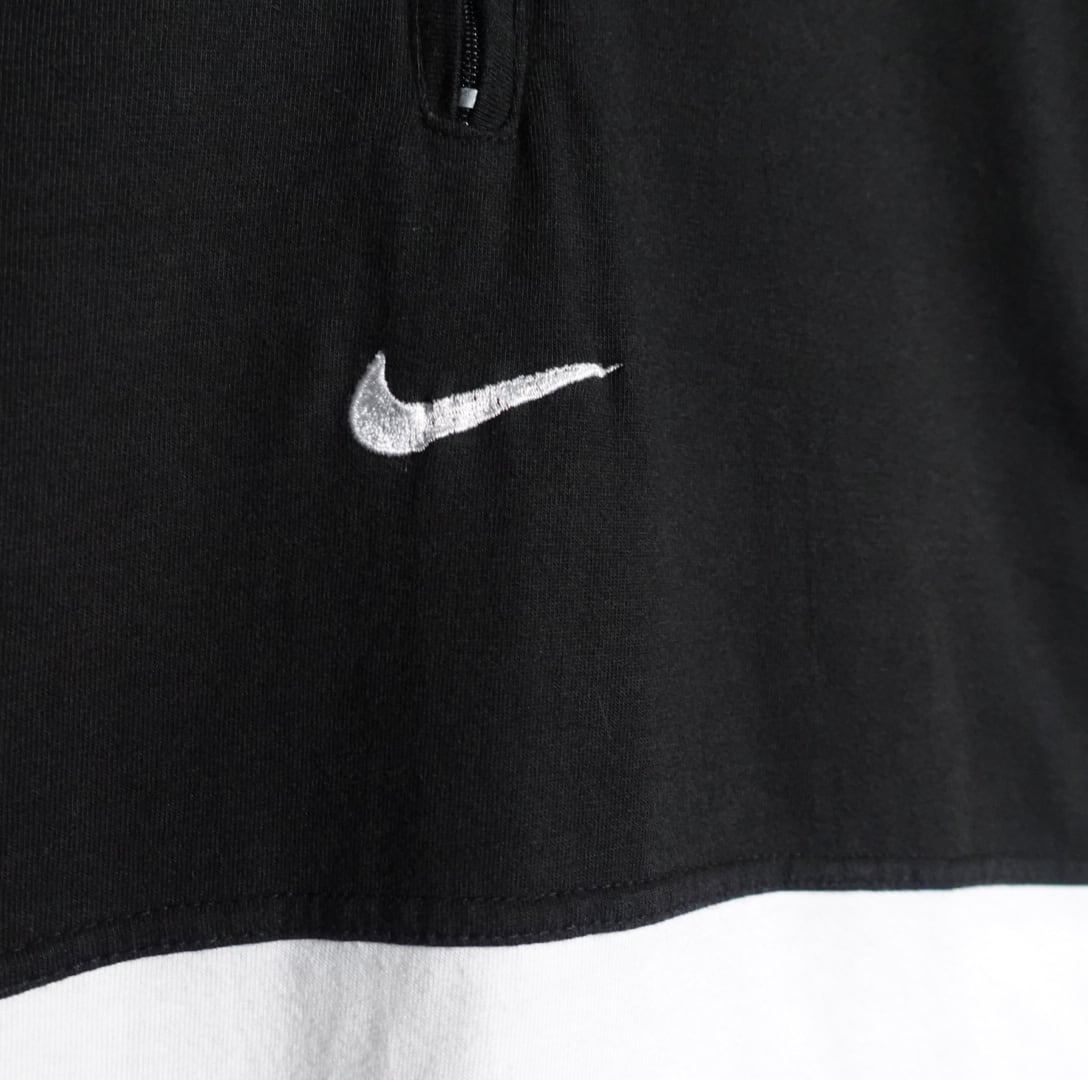 ブラック&ホワイトのモノトーンカラーに中心にNIKEの刺繍ロゴを施したデザイン。