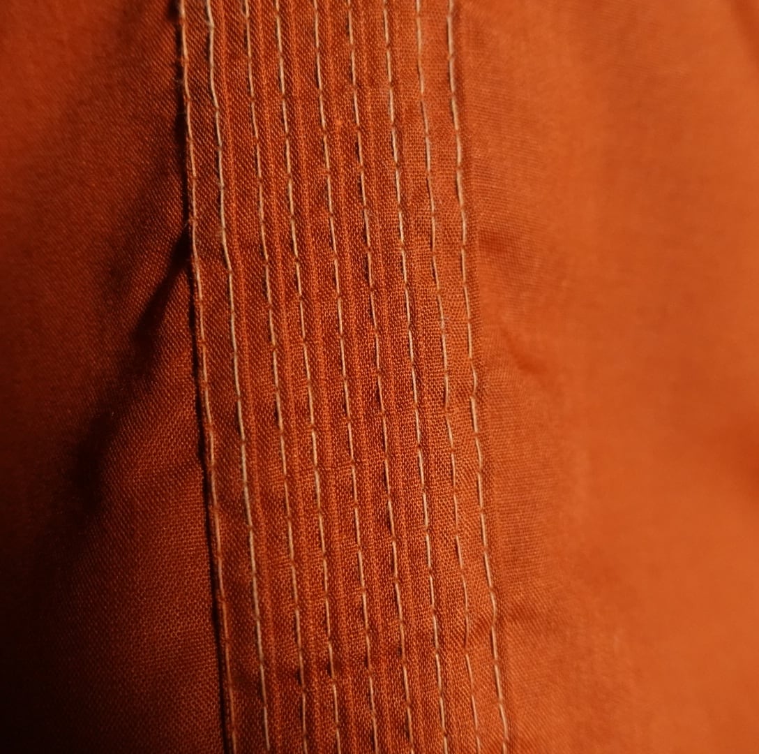 素材はポリエステル65%、コットン35%でサラッとした質感で夏にぴったりの風通しの良い生地感です。