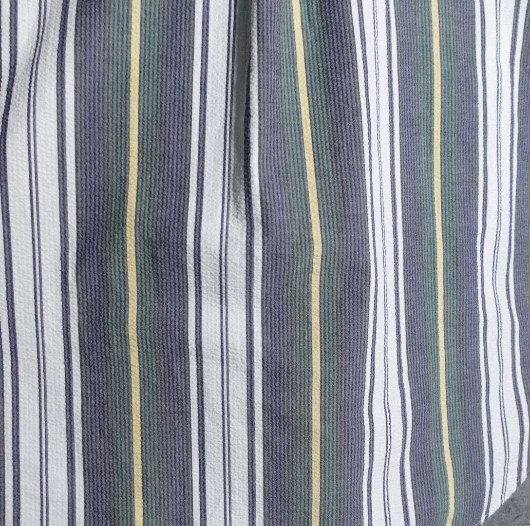 グレー、グリーン、イエロー、ホワイトのストライプ柄を全面にあしらったデザイン。