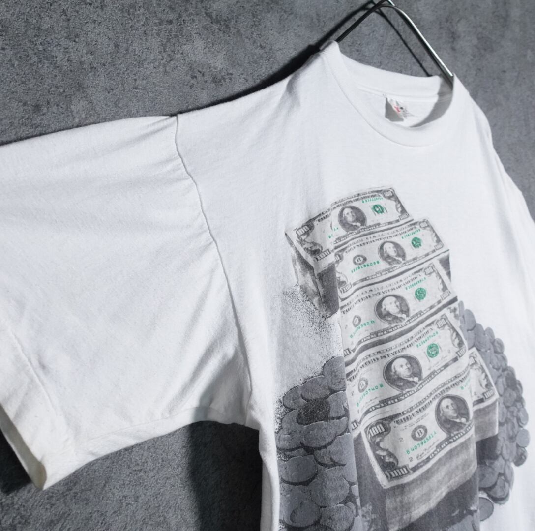 ホワイトをベースにアメリカのドルのお札とコインのプリントを両面にあしらった洒落たデザイン。