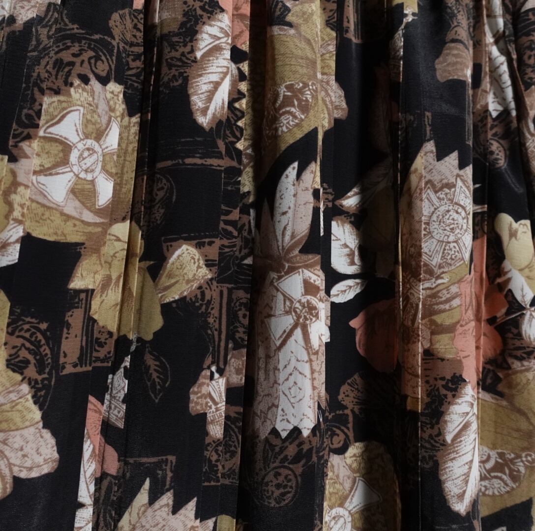ブラックをベースに薔薇などのモチーフを水彩画タッチで全面にあしらったアーティスティックなデザイン。
