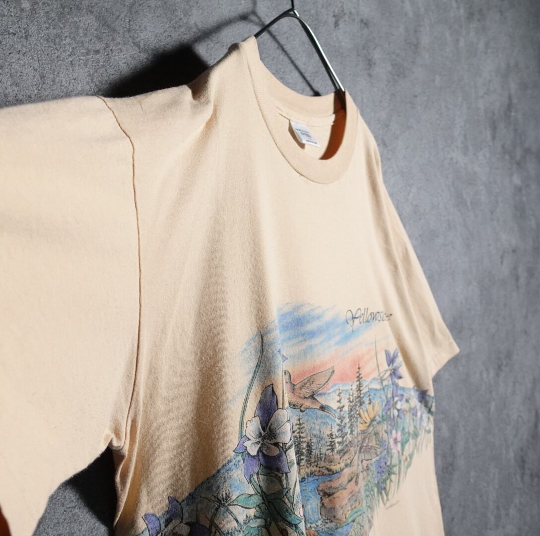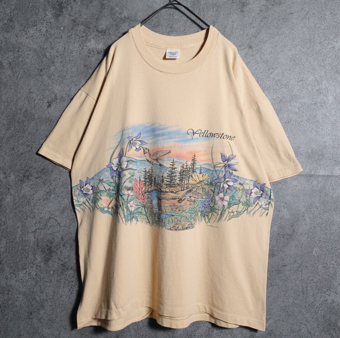 アメリカ製のベージュの風景画両面プリントTシャツが入荷です。