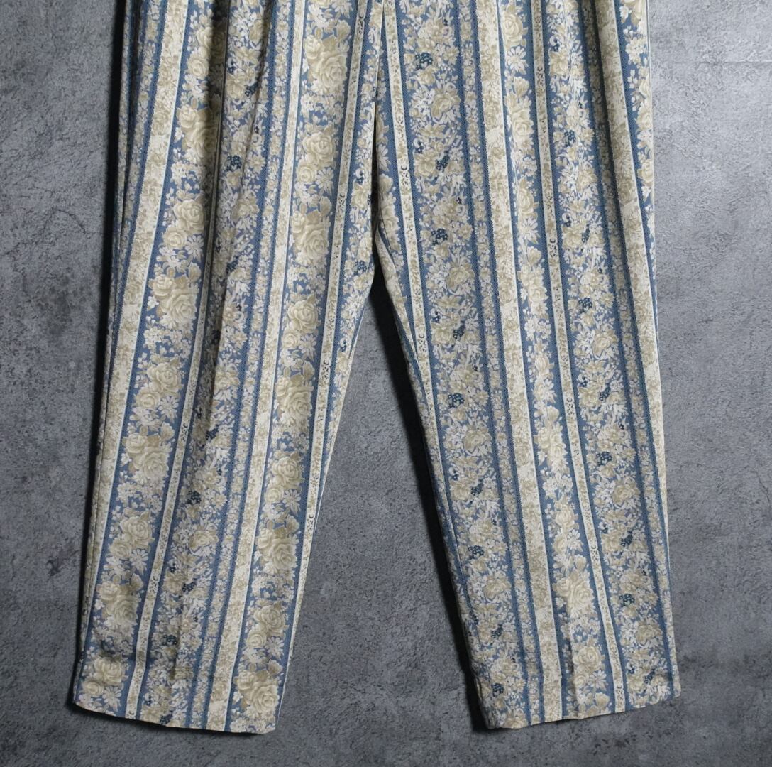 Floral stripe two-tuck slacks