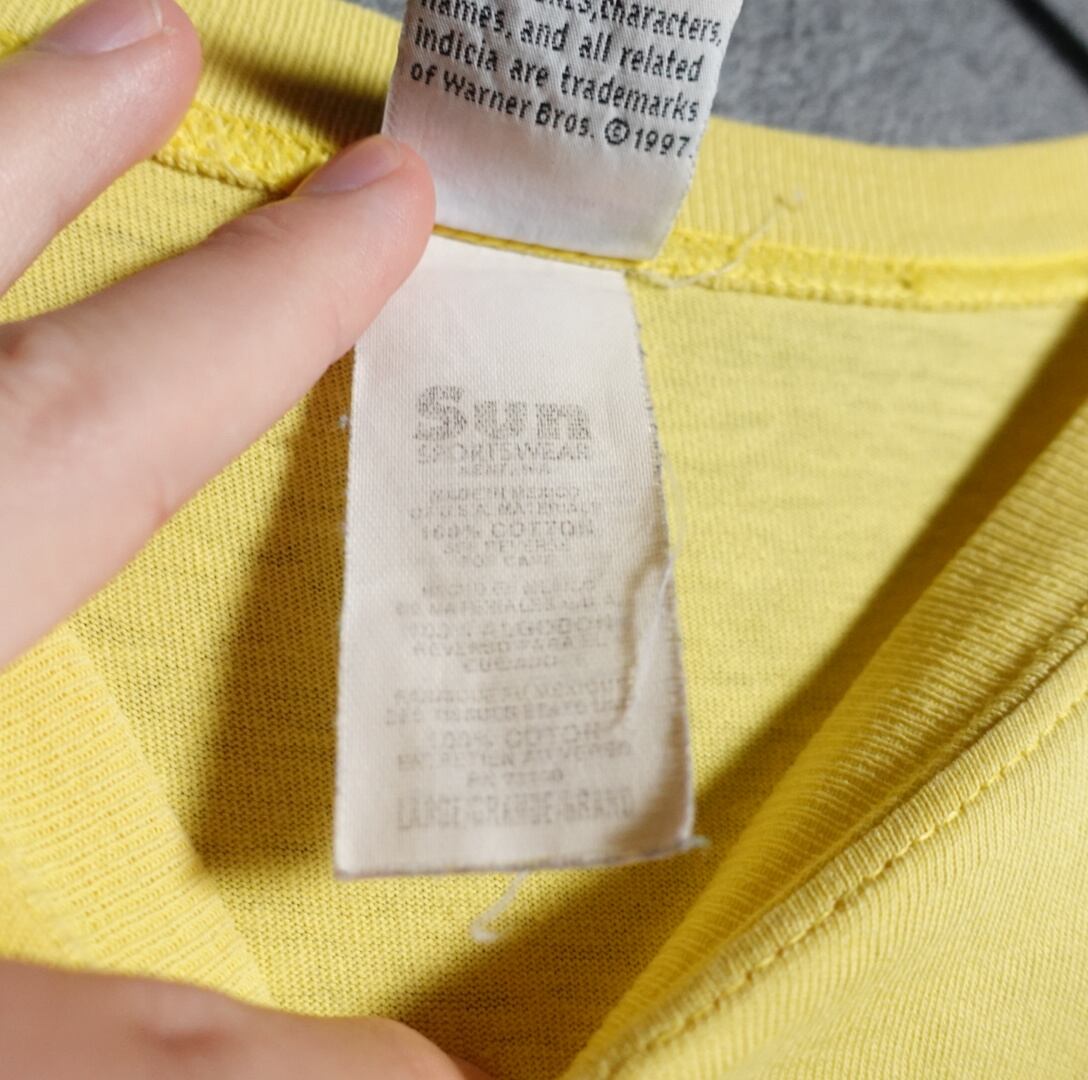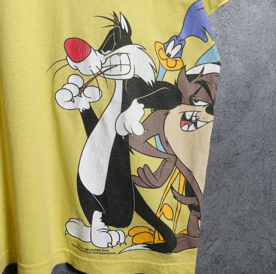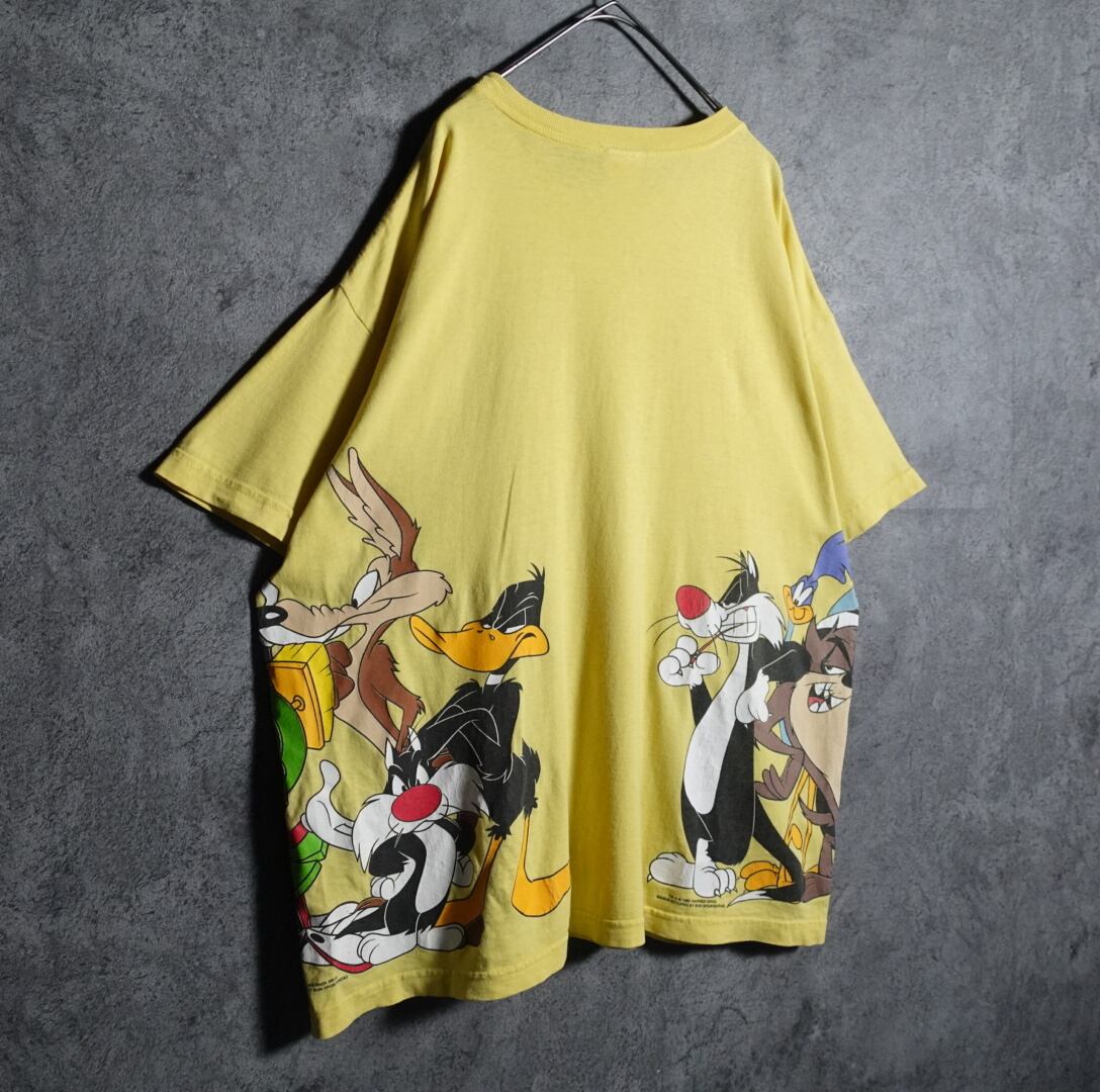 90s "LOONEY TUNES" Yellow double-sided print T-shirt