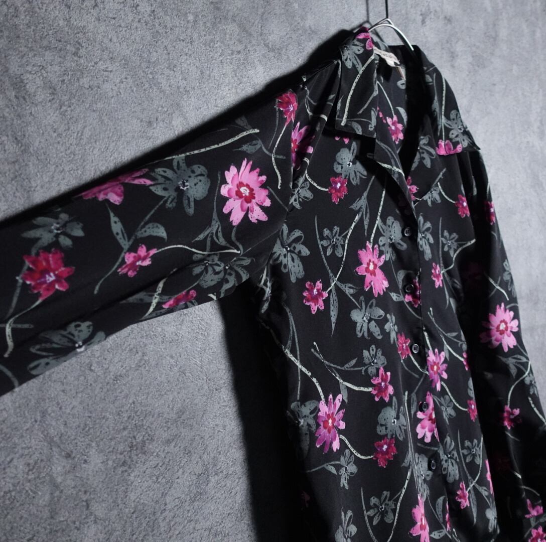 Flower design open collar pattern shirt
