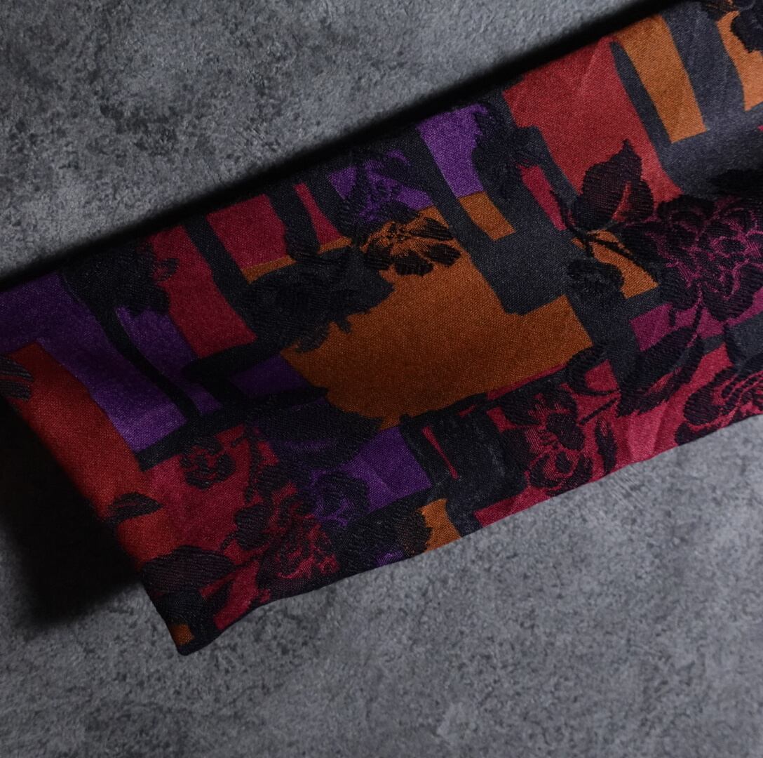 素材はレーヨン58%ポリエステル42%美しい光沢感があり、柔らかくドレープ性のある生地感となっています。