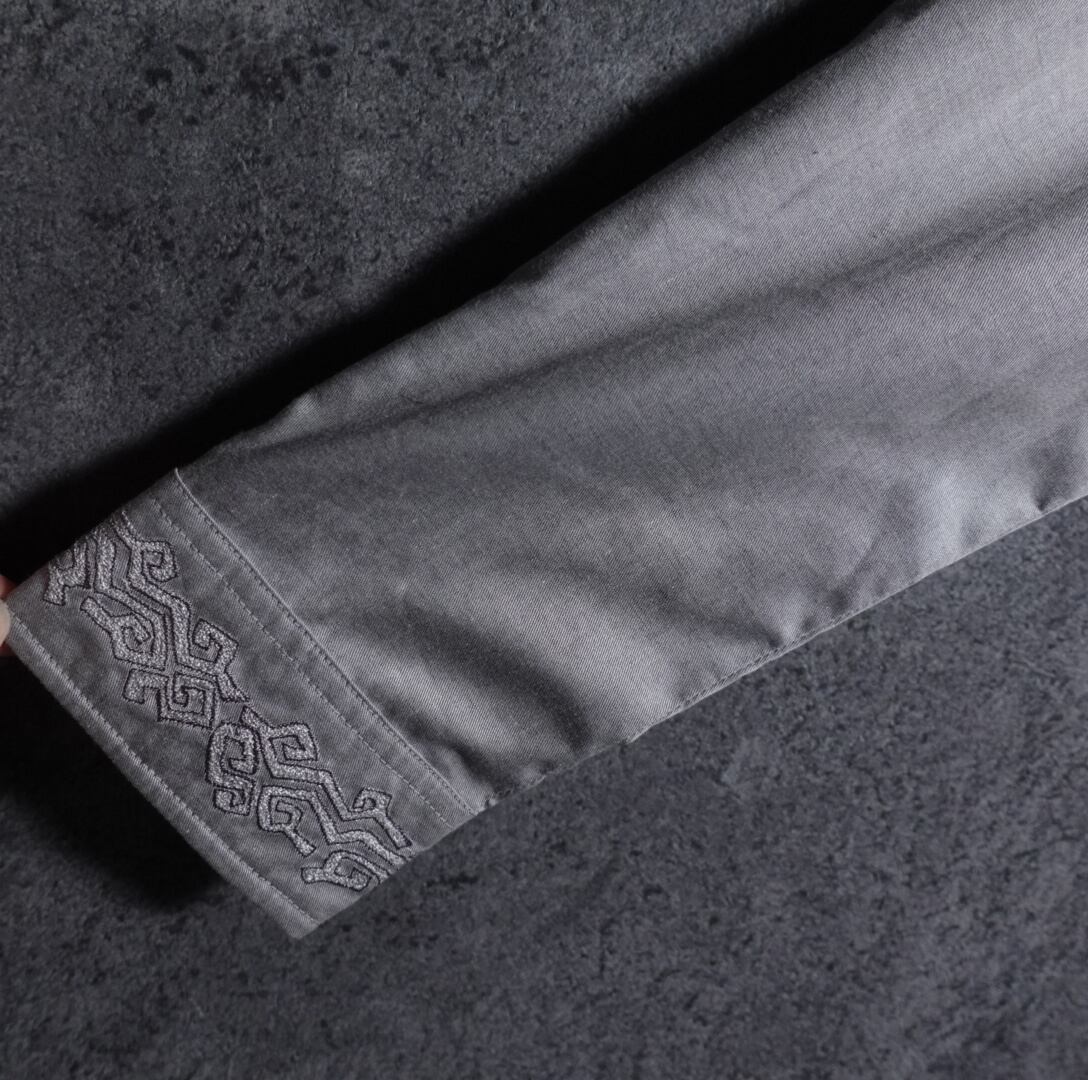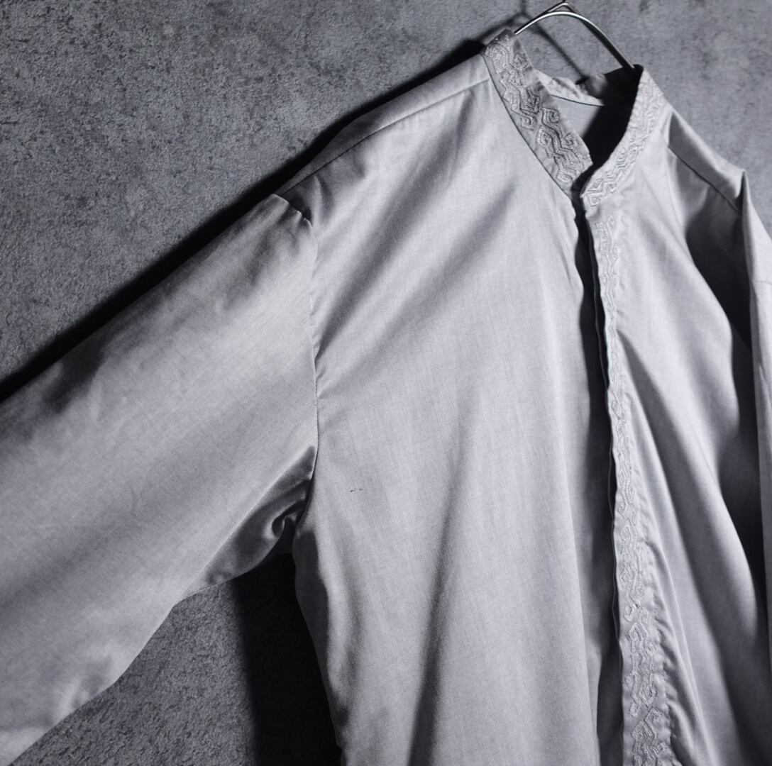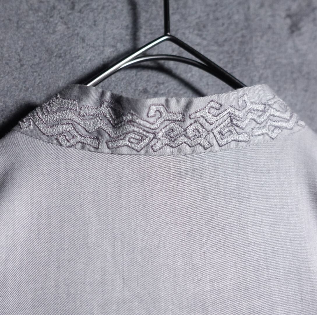 シルバーの刺繍デザインバンドカラーシャツが入荷です。
