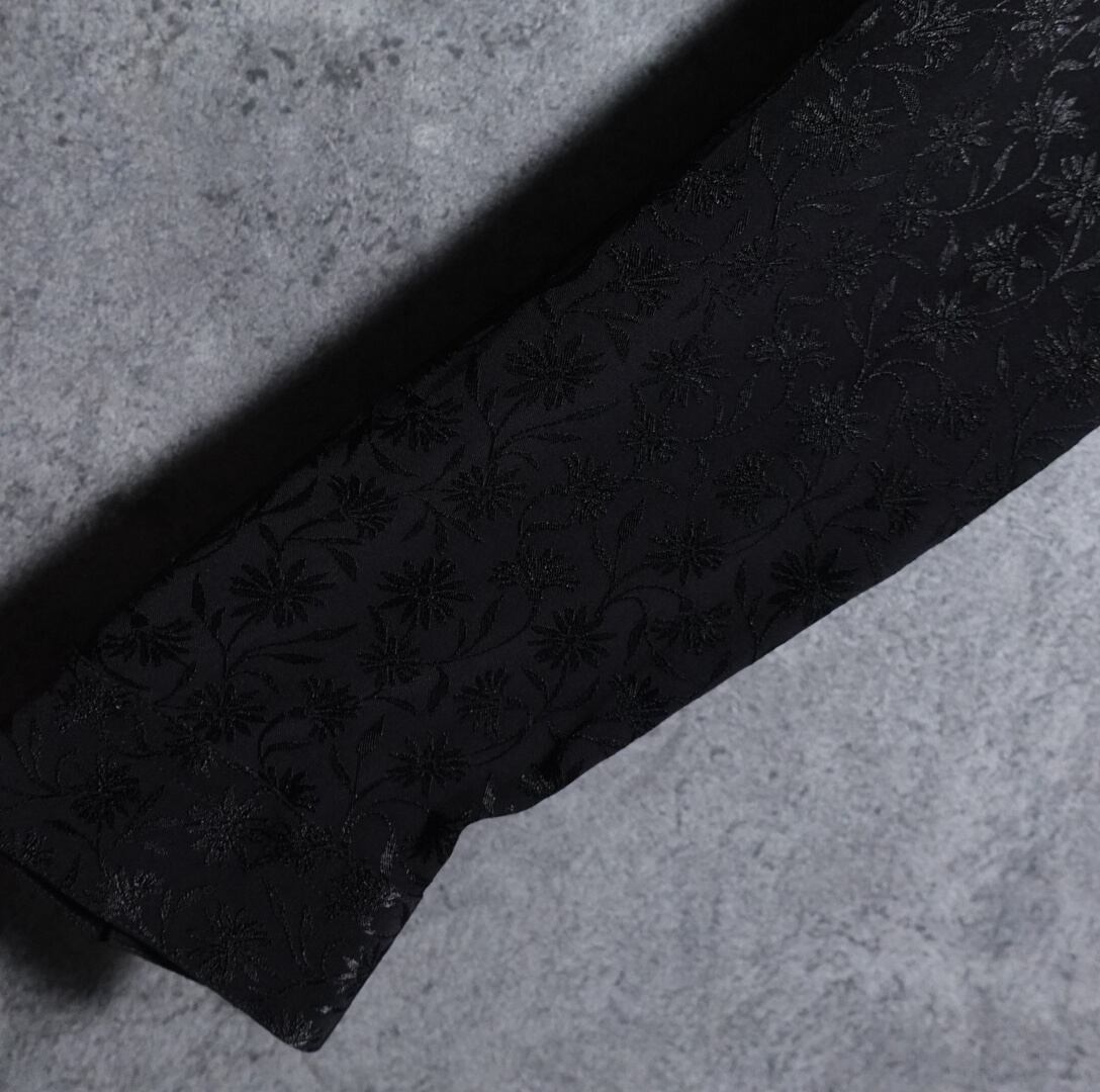 ブラックをベースに光の反射で浮き上がるシャドーの花柄を全面にあしらった洒落たデザイン。