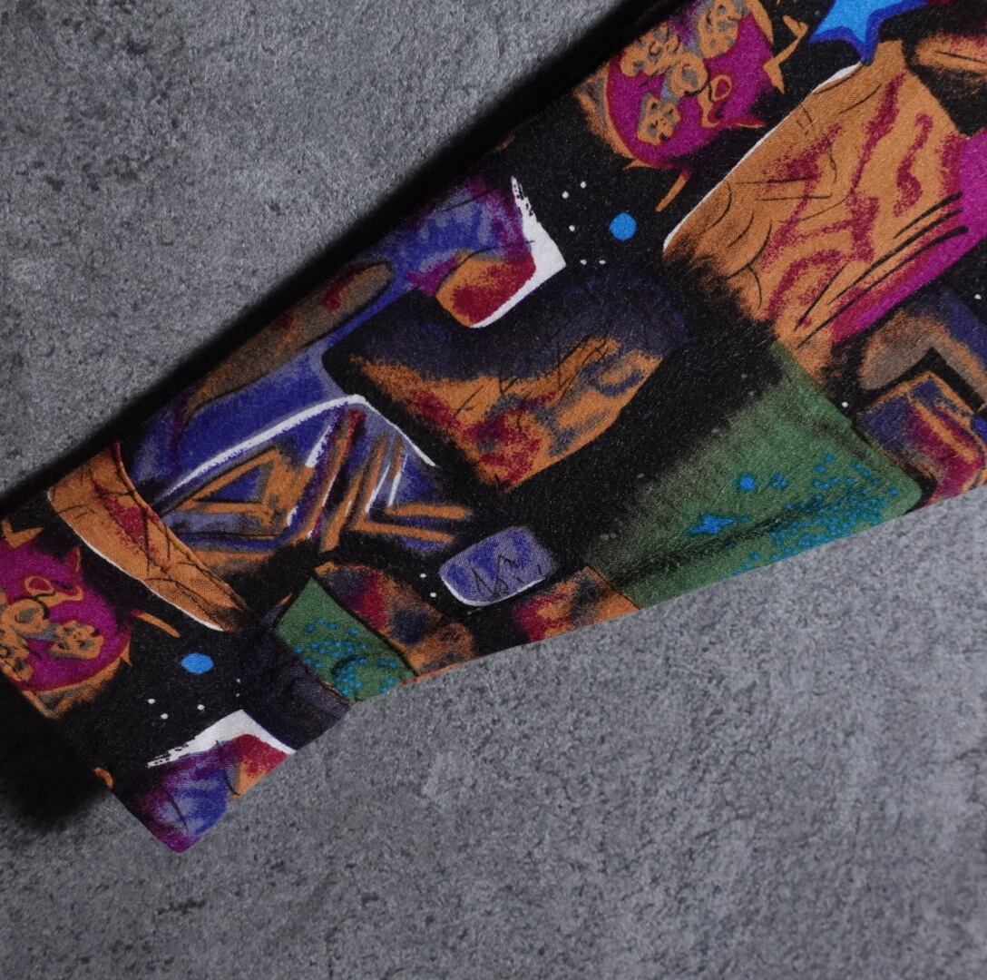 様々な幾何学模様を全面にびっしりあしらったアーティスティックなデザイン。
