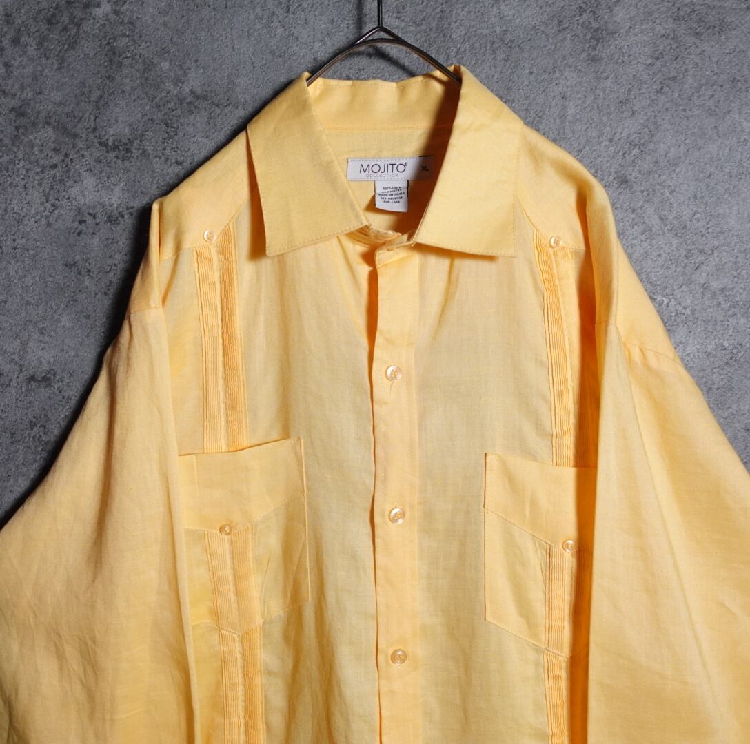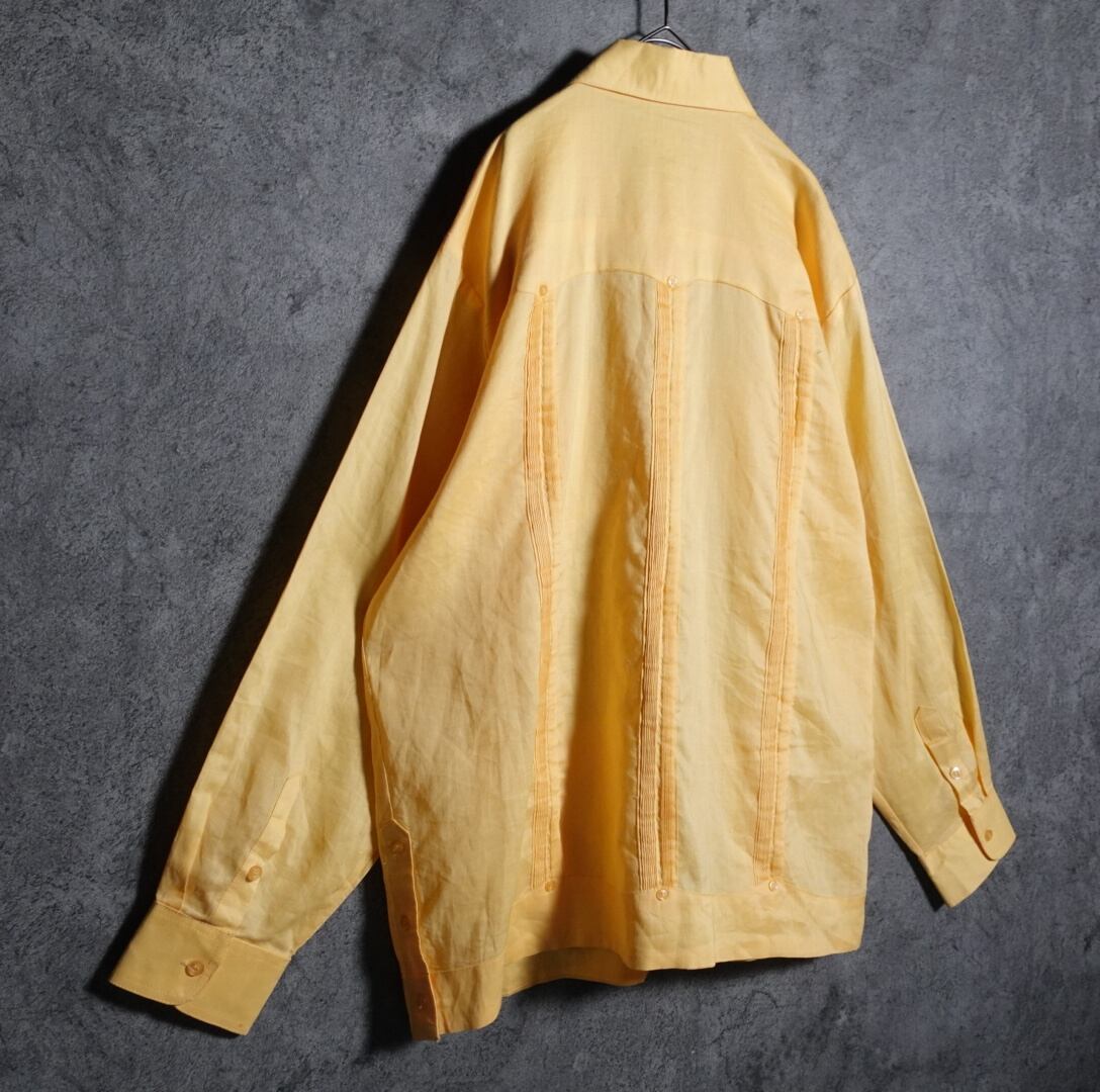 イエローのプリーツデザインキューバシャツが入荷です。