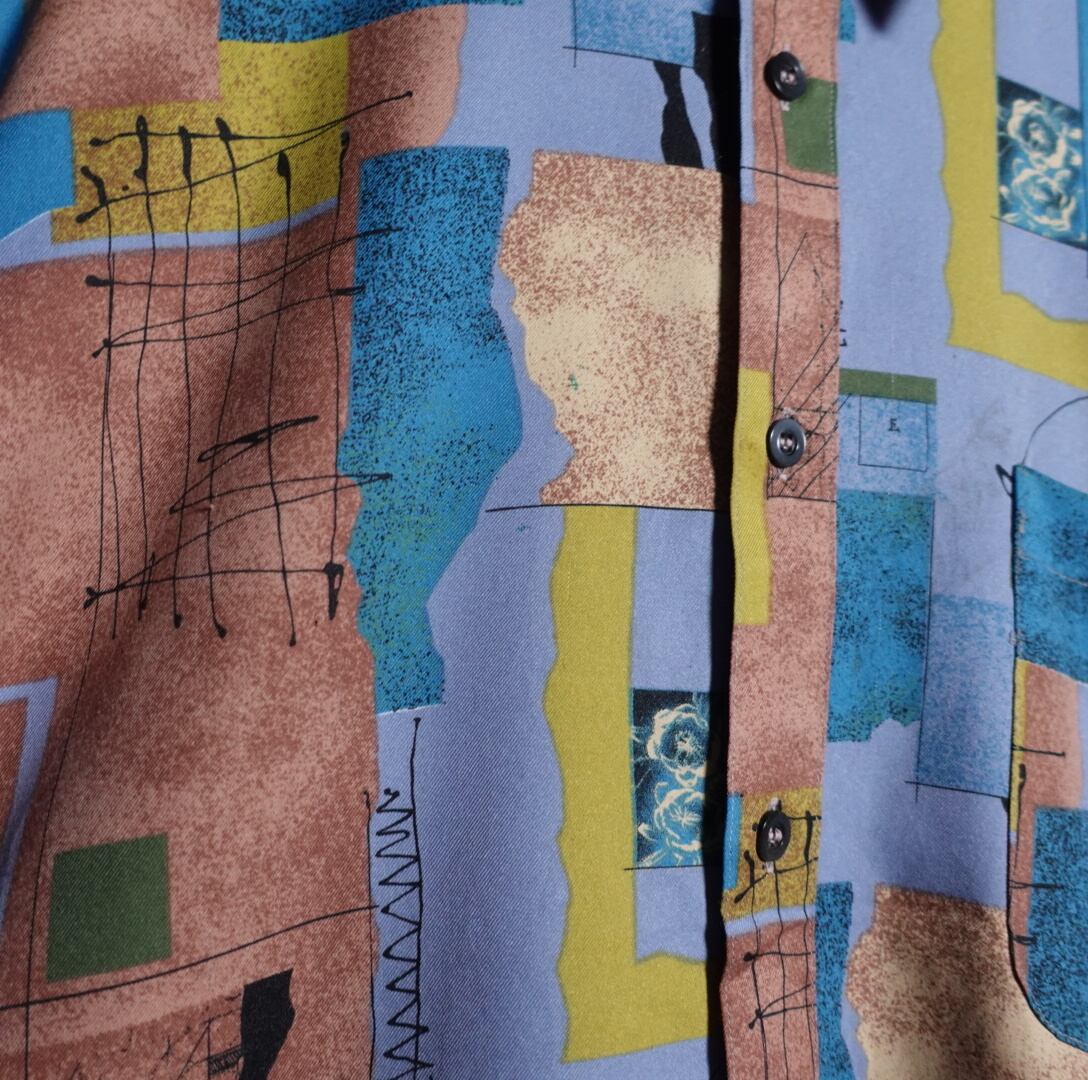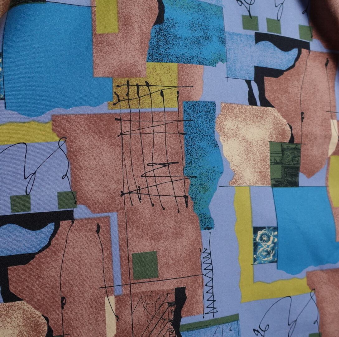 様々な幾何学模様を全面にバラバラにあしらったデザイン。
