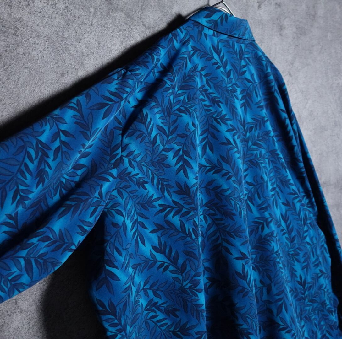 ターコイズブルーのボタニカル柄シャツが入荷です。