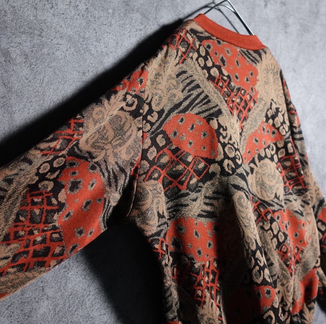 抽象的な柄と様々な幾何学模様を全面にあしらったデザイン。