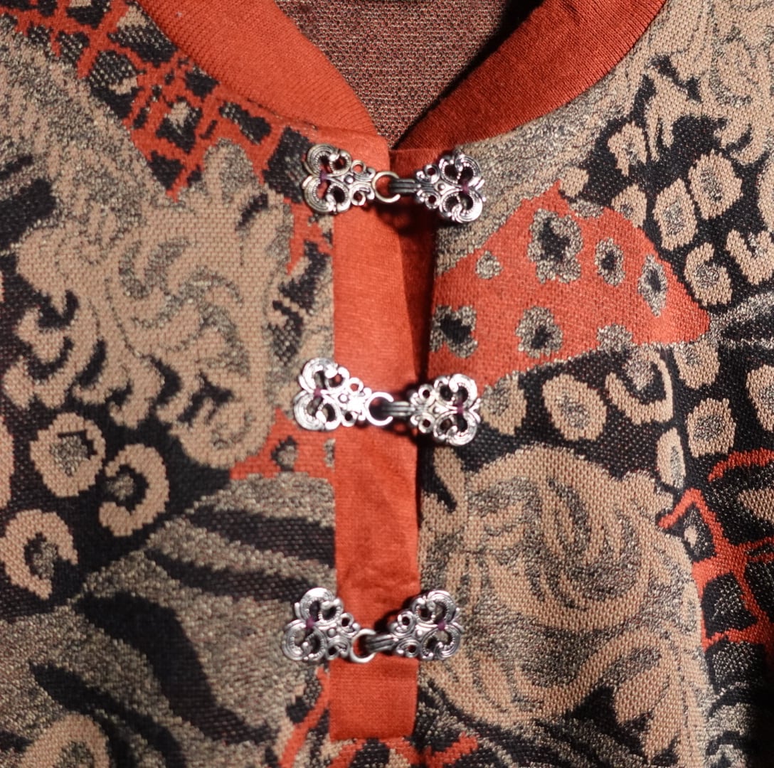 チロリアンニット特有の銀のフックにが、このアイテムの雰囲気をさらに上げてくれています。