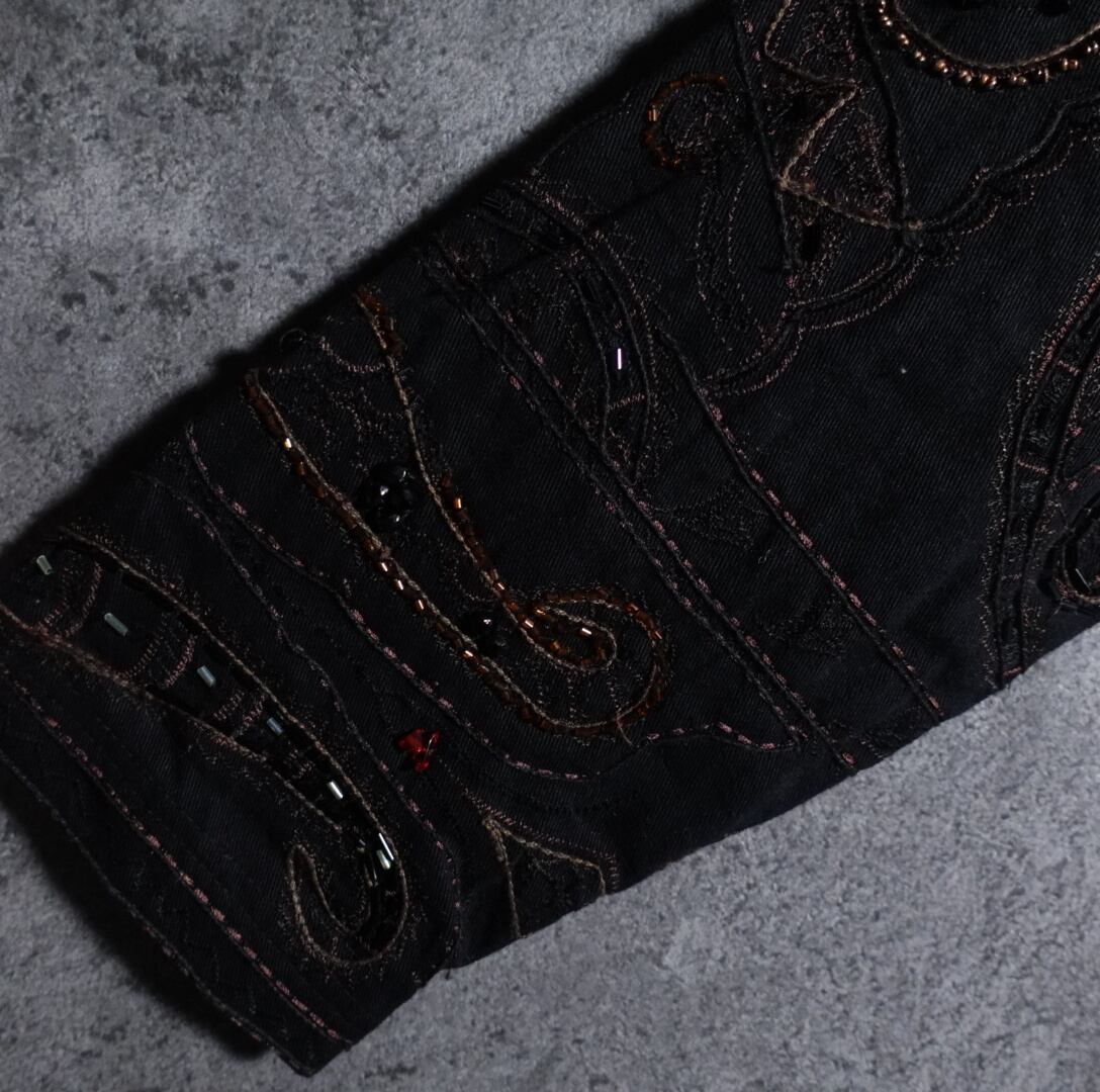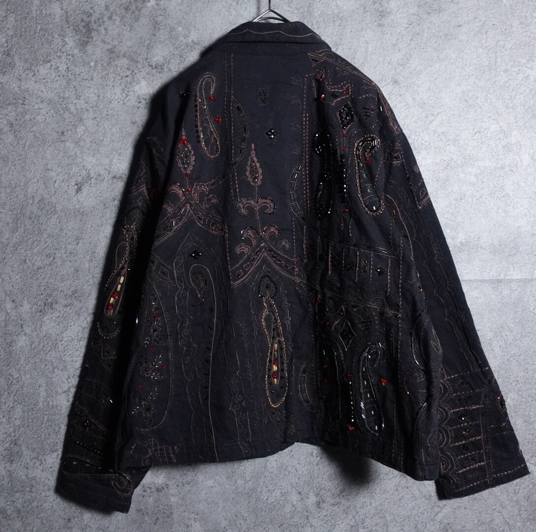 ブラックをベースにペイズリー柄、ボタニカルモチーフ、抽象的な柄の刺繍を全面に施したスペシャルなデザイン。