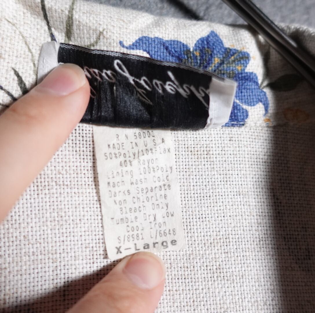 素材はポリエステル50% レーヨン40% フラック10%でハリのある生地感です。