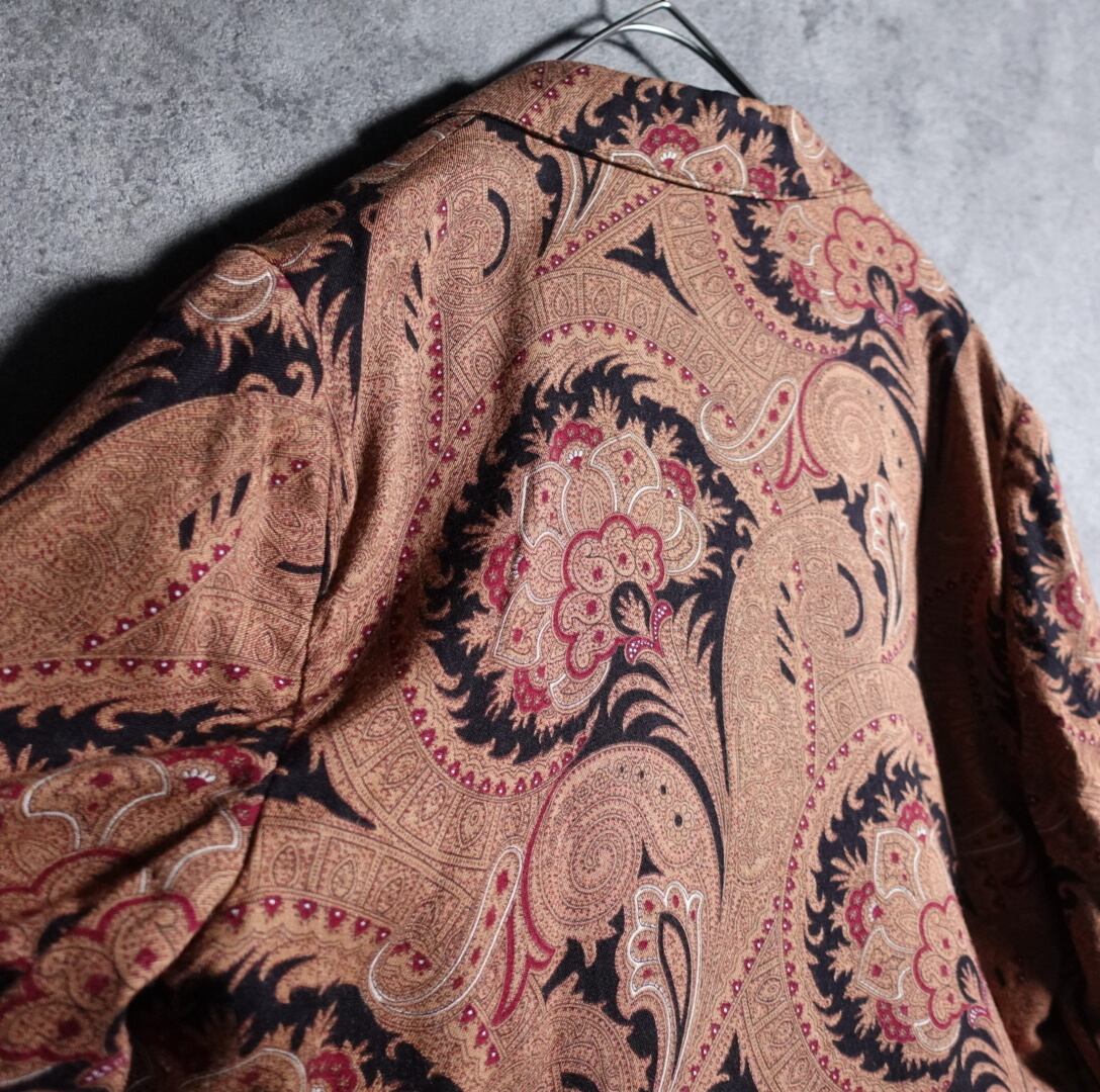 ブラウンをベースに大小様々なペイズリー柄を全面にあしらったデザイン。