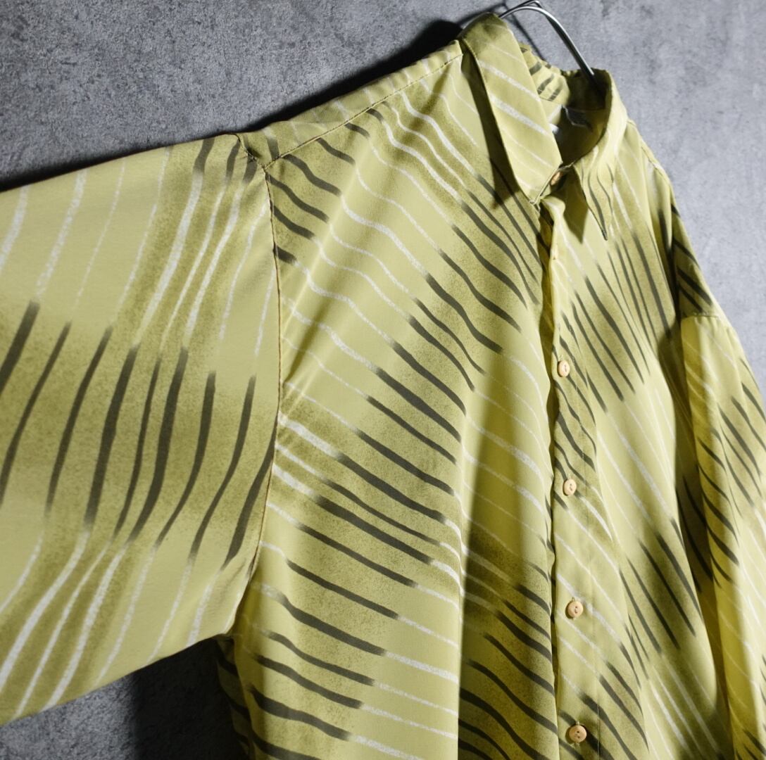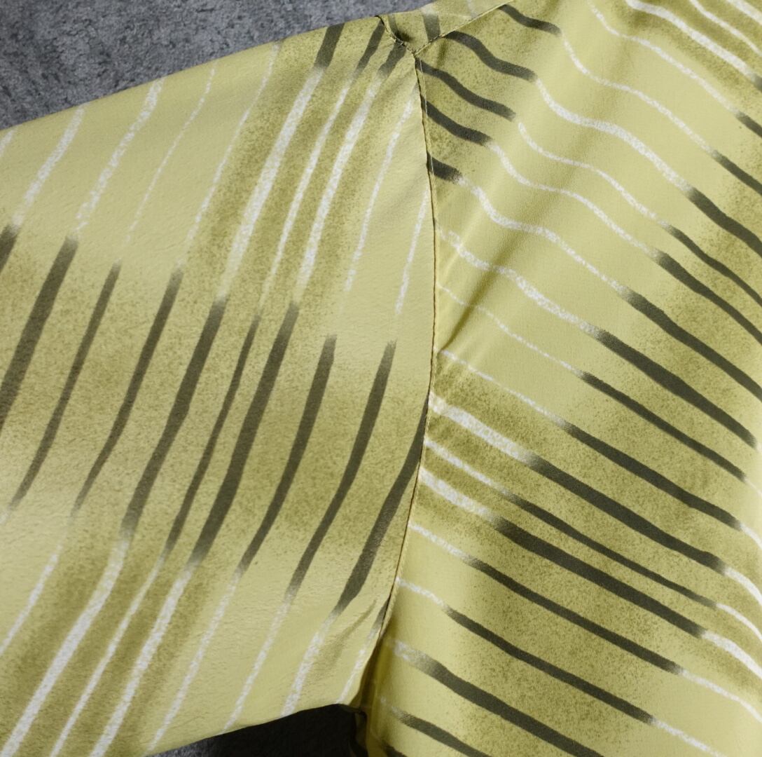 グリーンをベースにブラックとホワイトのストライプ柄を斜めにあしらったデザイン。