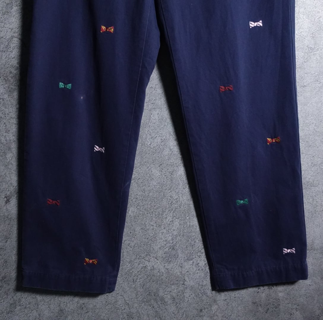 "BROOKS BROTHERS" navy embroidery no-tuck slacks pants