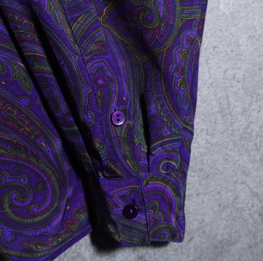 パープルをベースに繊細なペイズリー柄を全面にあしらった色気のあるデザイン。