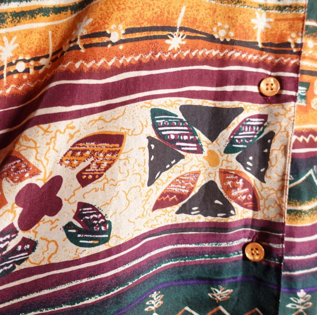抽象的なデザインが描かれたバンドカラーシャツが入荷です。