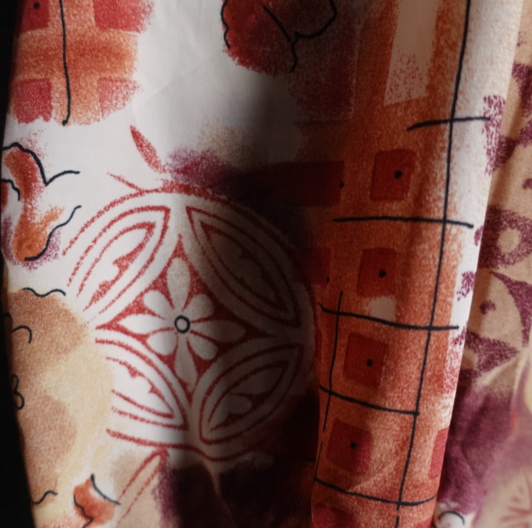 素材は恐らくポリエステルで、サラッとした質感で秋にぴったりの風通しの良い生地感です。