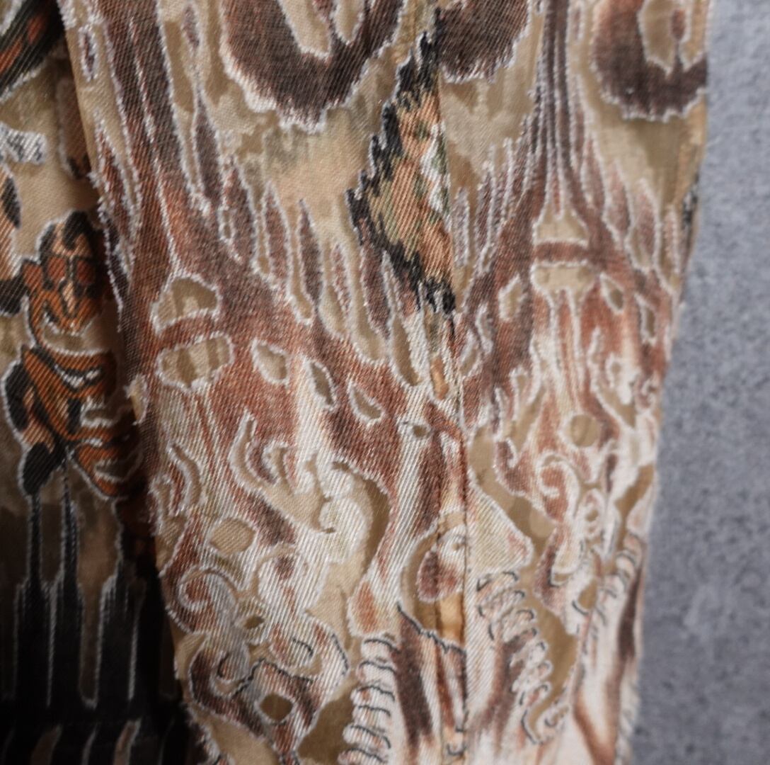 シアー生地をベースに透け感の無い生地でダマスク柄とレオパード柄を全面にあしらったインパクトのあるデザイン。
