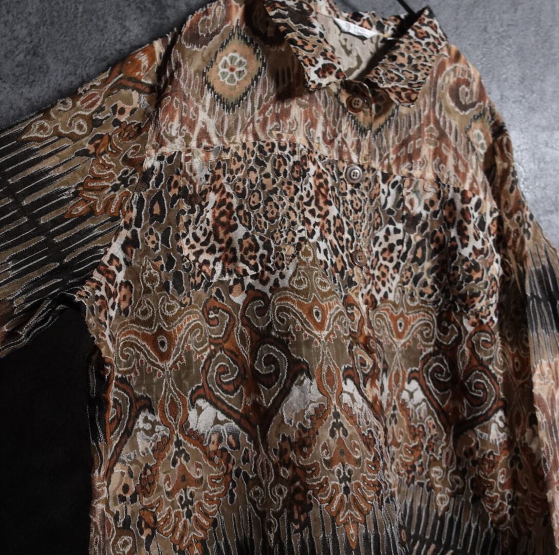 Damask x Leopard Sheer Shirt Jacket