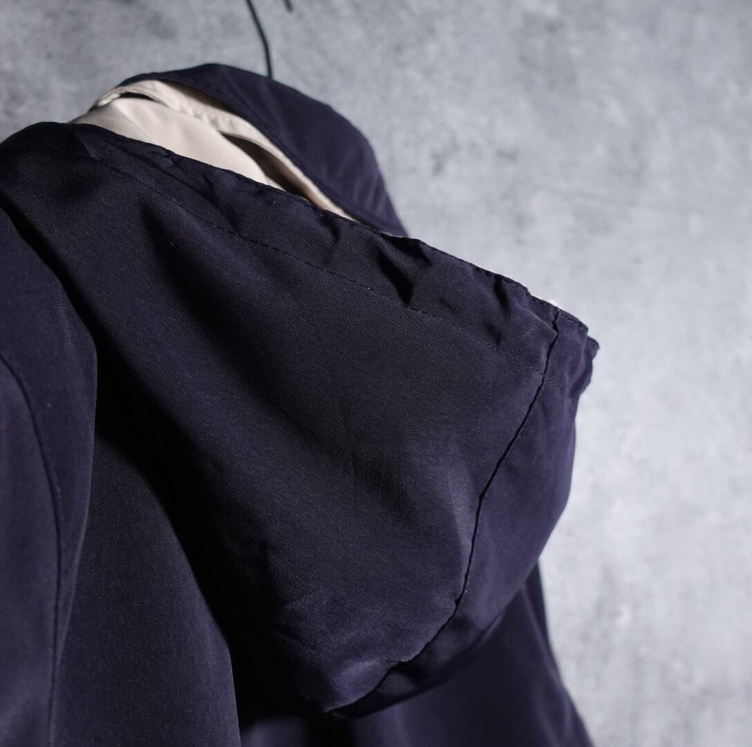 フードの内側、襟、ポケット、袖先のベルトがベージュになっており、丁度良いアクセントになっています。