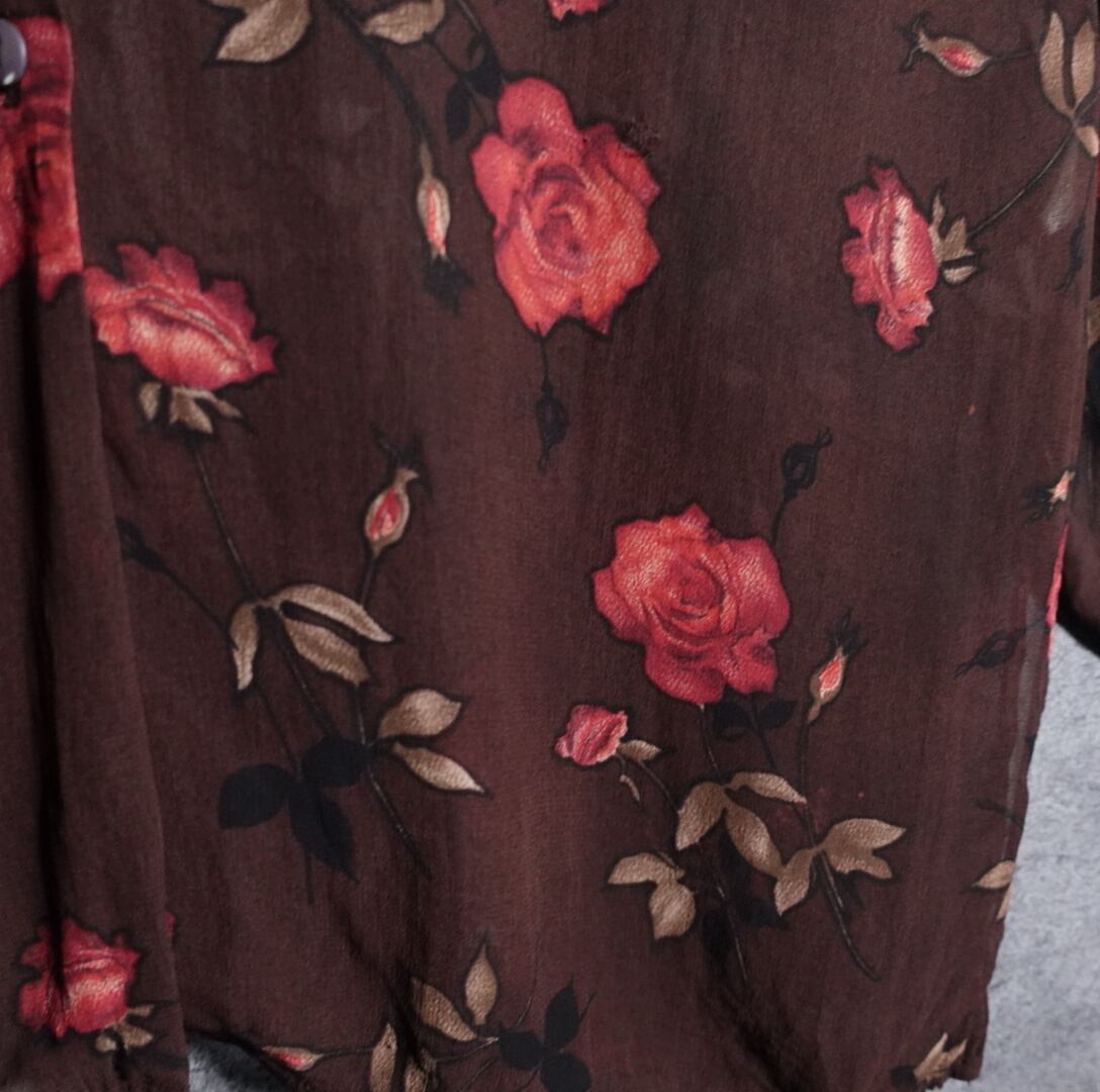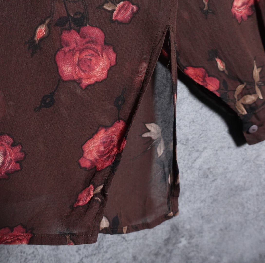 ブラウンの花柄デザインシアーシャツが入荷です。