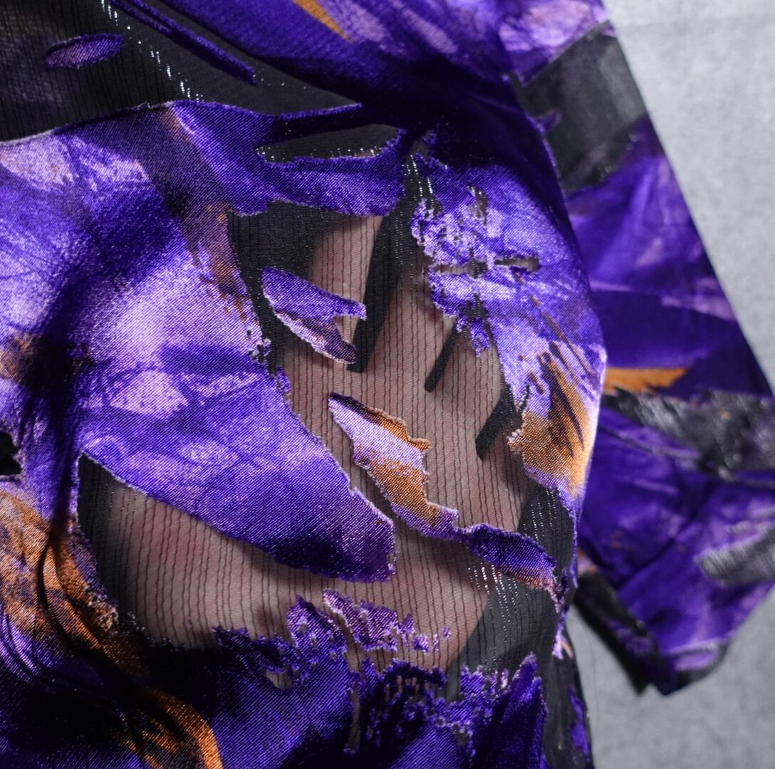パープルのデザインスタンドカラーシアーシャツが入荷です。
