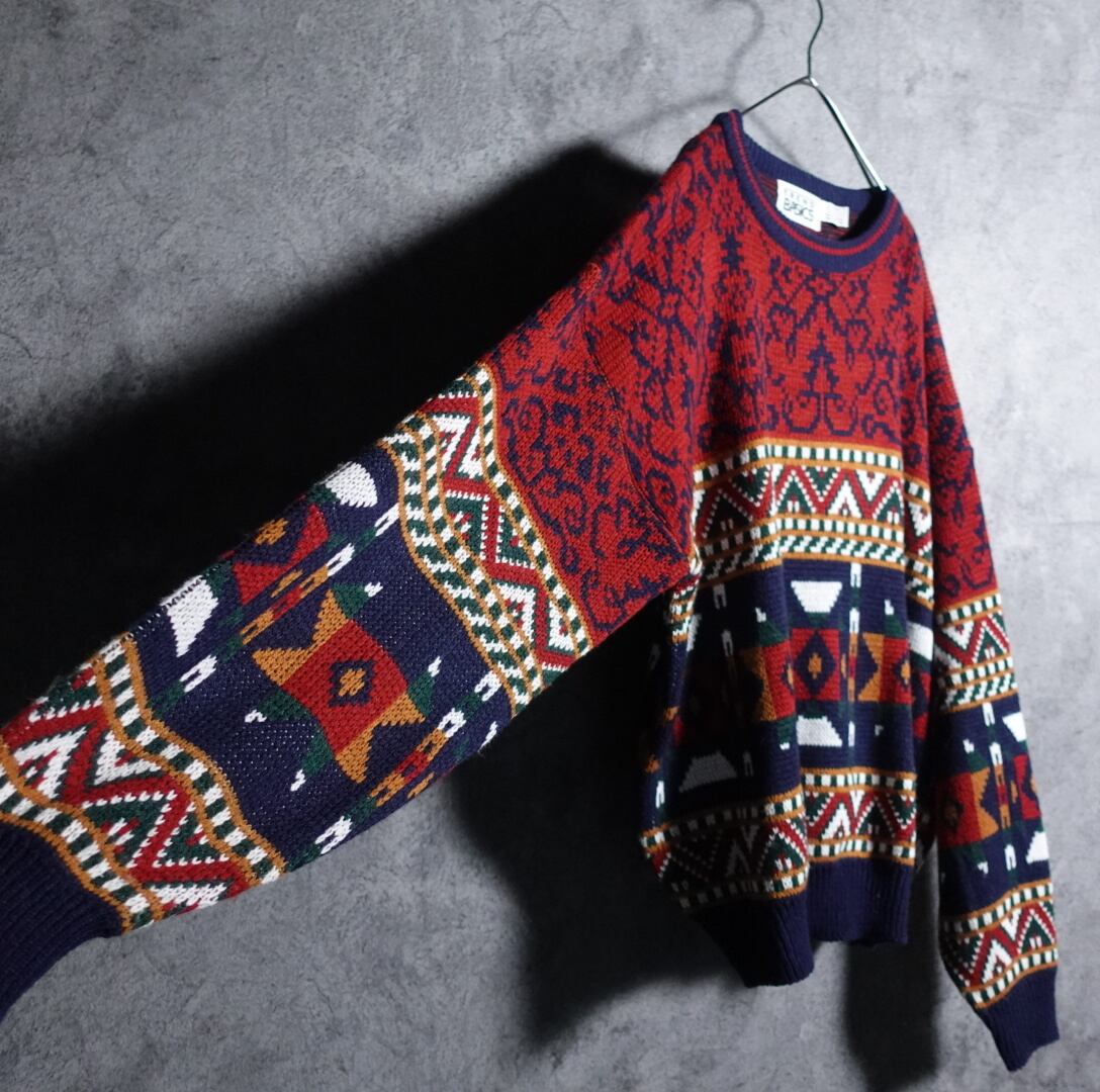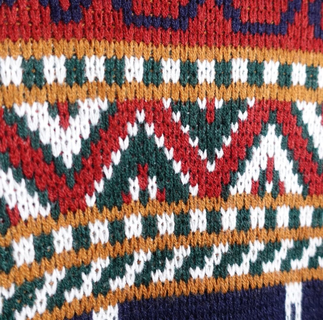 ネイビーをベースにレッド、グリーン、マスタードイエローのポップなカラーリング。