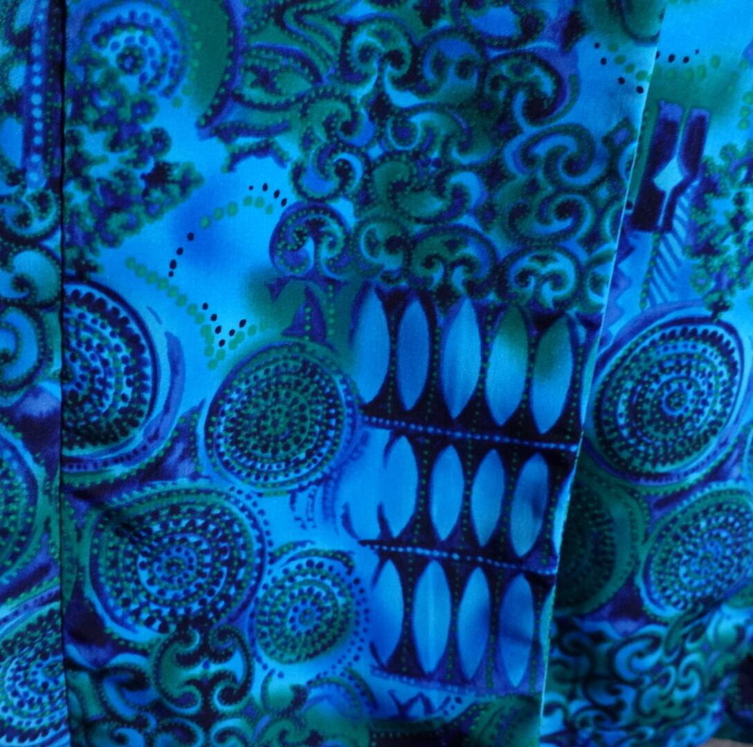 ブルー、グリーン、ネイビーという絶妙なカラーリングが柄の雰囲気とマッチしており、洒落ていていいですね。