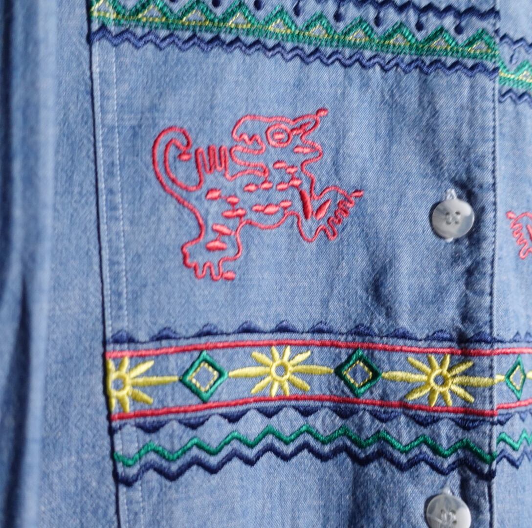 刺繍デザインデニムシャツが入荷です。