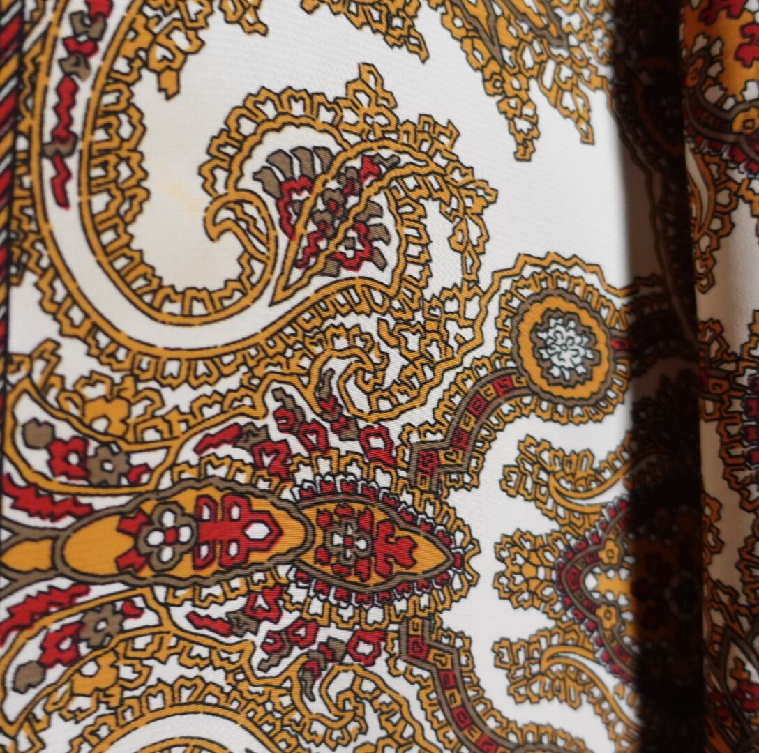 アイボリーをベースにスカーフ柄を全面で表現した高級感溢れるラグジュアリーなデザイン。