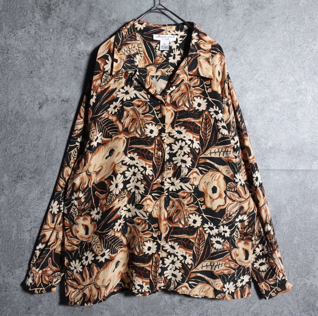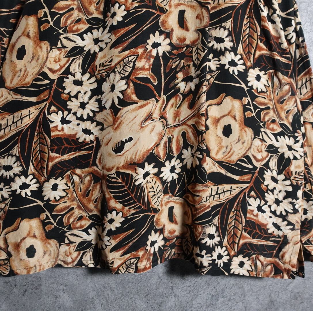 ブラックをベースに全面にあしらった花のアーティスティックなデザイン。