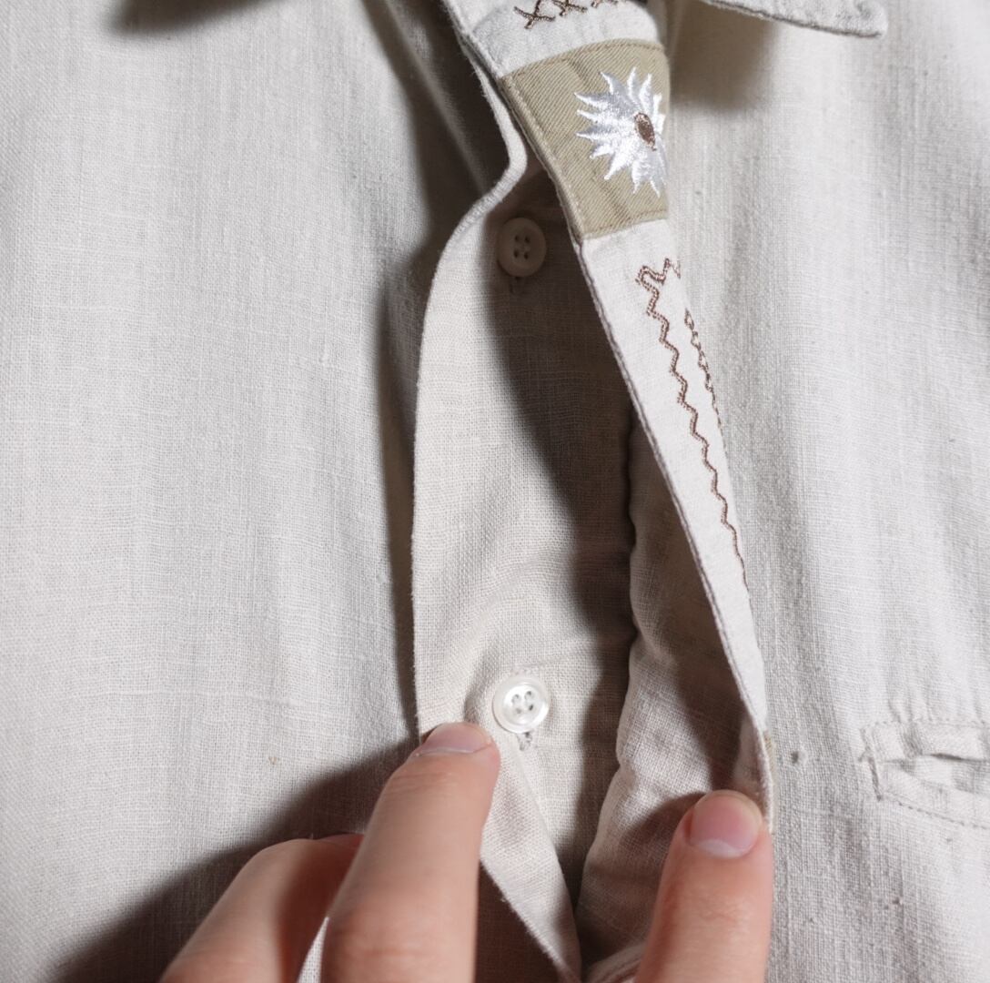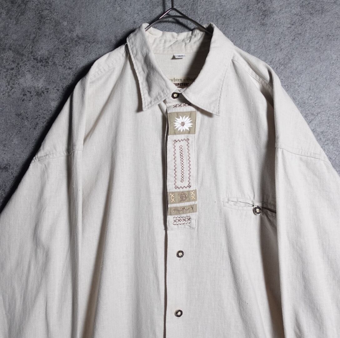 ベージュの花柄刺繍チロリアンシャツが入荷です。