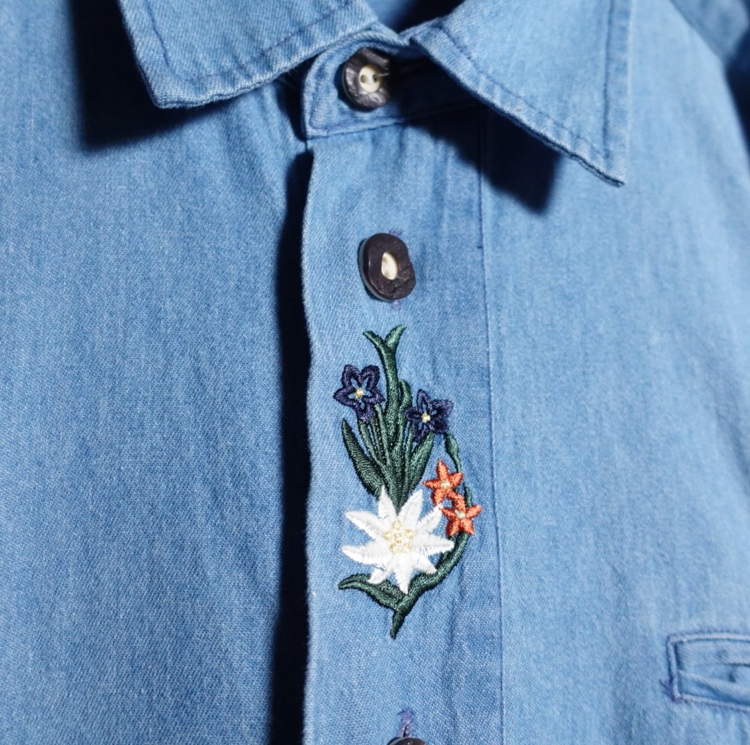 刺繍デザインデニムチロリアンシャツが入荷です。