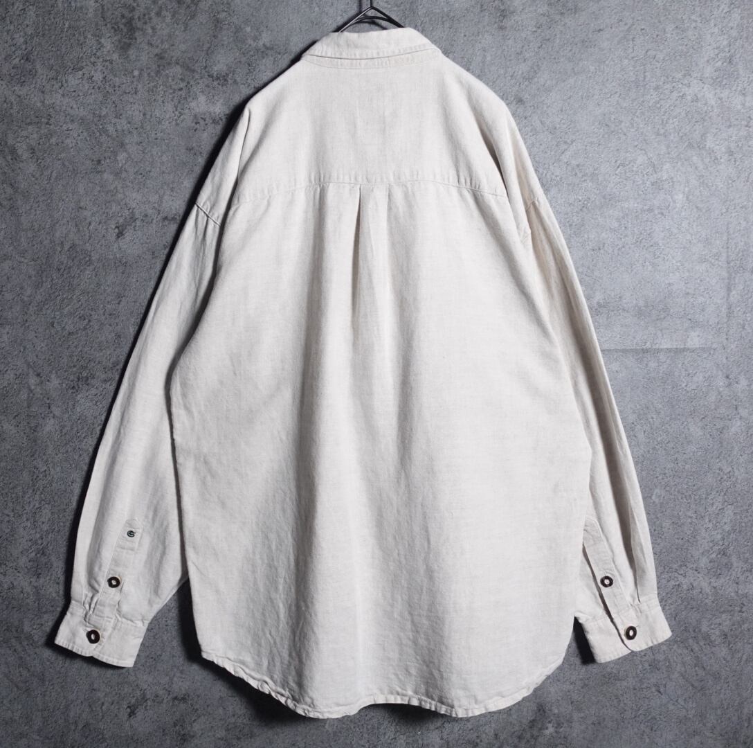 サイズ表記はありませんが、実寸的にはXLサイズ相当で、ゆったりとしたオーバーサイズで着ていただけます。