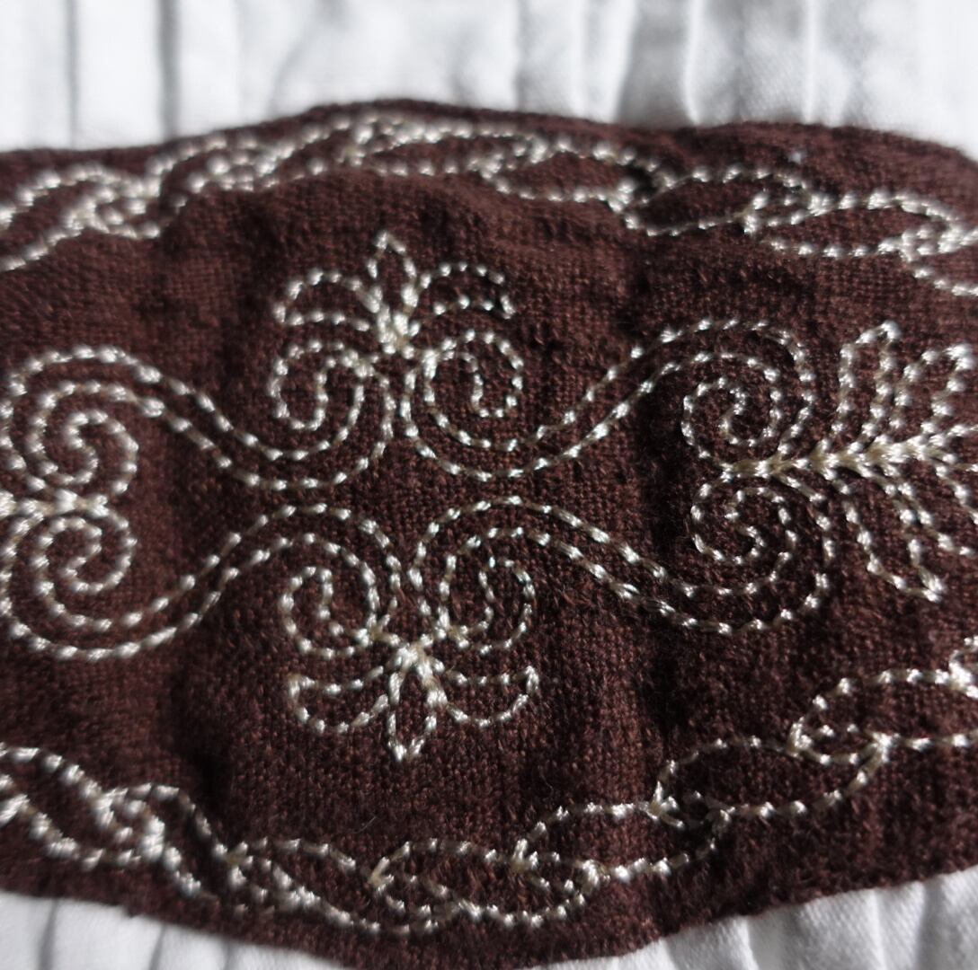 ベルトの装飾部分を刺繍できめ細やかに再現しており、凝りに凝っています。