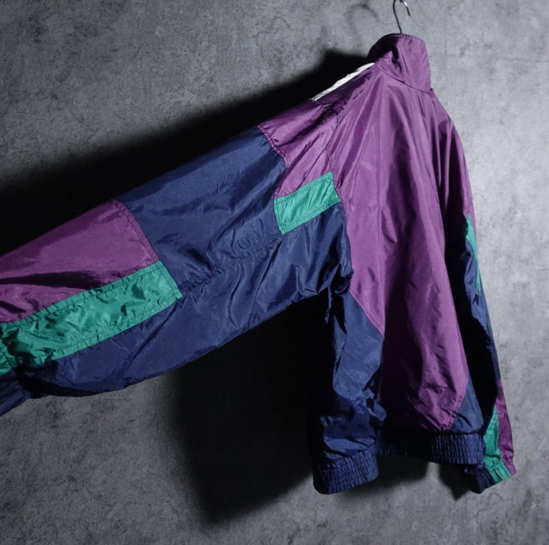ネイビーをベースにグリーン、パープル、ホワイトの洒落たマルチカラーリング。