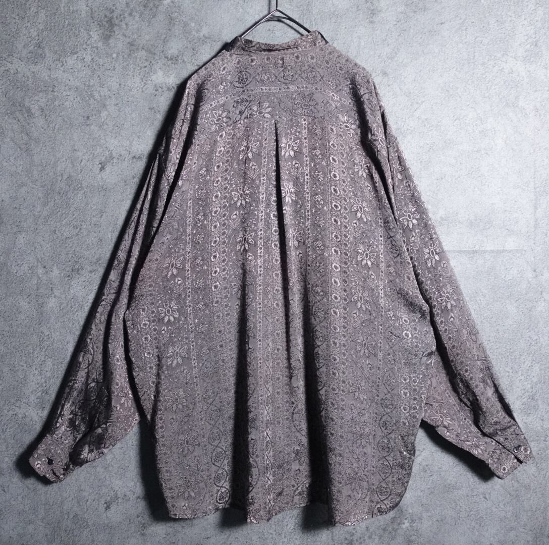 柄シャツには珍しいスタンドカラーでスッキリとした印象で◎